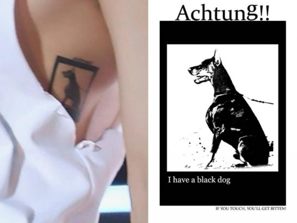 Hình xăm bên trái mạn sườn của Jonghyun: "I had a black dog. His name was Depression"