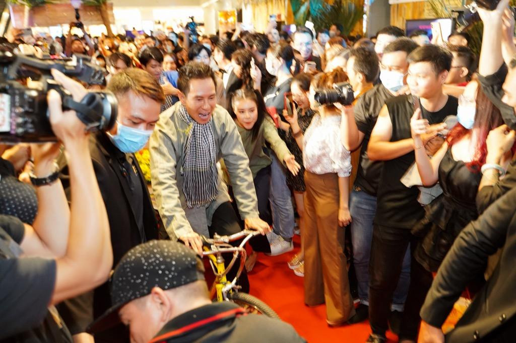 Sau phần chụp hình, đạo diễn Lý Hải đã thay vest lịch lãm bằng bộ đồ bà ba, đi dép tổ ong, đạp xe lôi đi thảm đỏ. Xe lôi là hình ảnh đặc trưng của miền Tây, cũng là đạo cụ gắn với những tình tiết ấn tượng trong Lật Mặt: 48H.