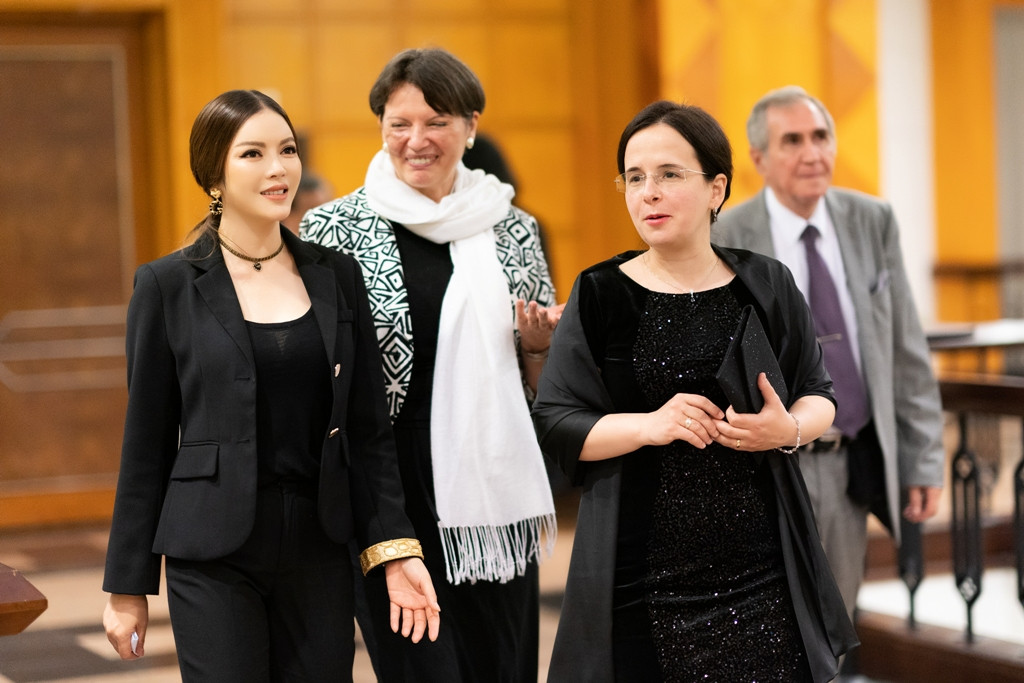 Trở về Việt Nam sau chuyến công tác dài ở nước ngoài, Lý Nhã Kỳ vẫn thu hút mọi ánh nhìn khi xuất hiện tại sự kiện đón tiếp đoàn đại biểu Rumani cùng ngài Đại sứ Rumani tại Việt Nam TS. Emil Ghitulescu.