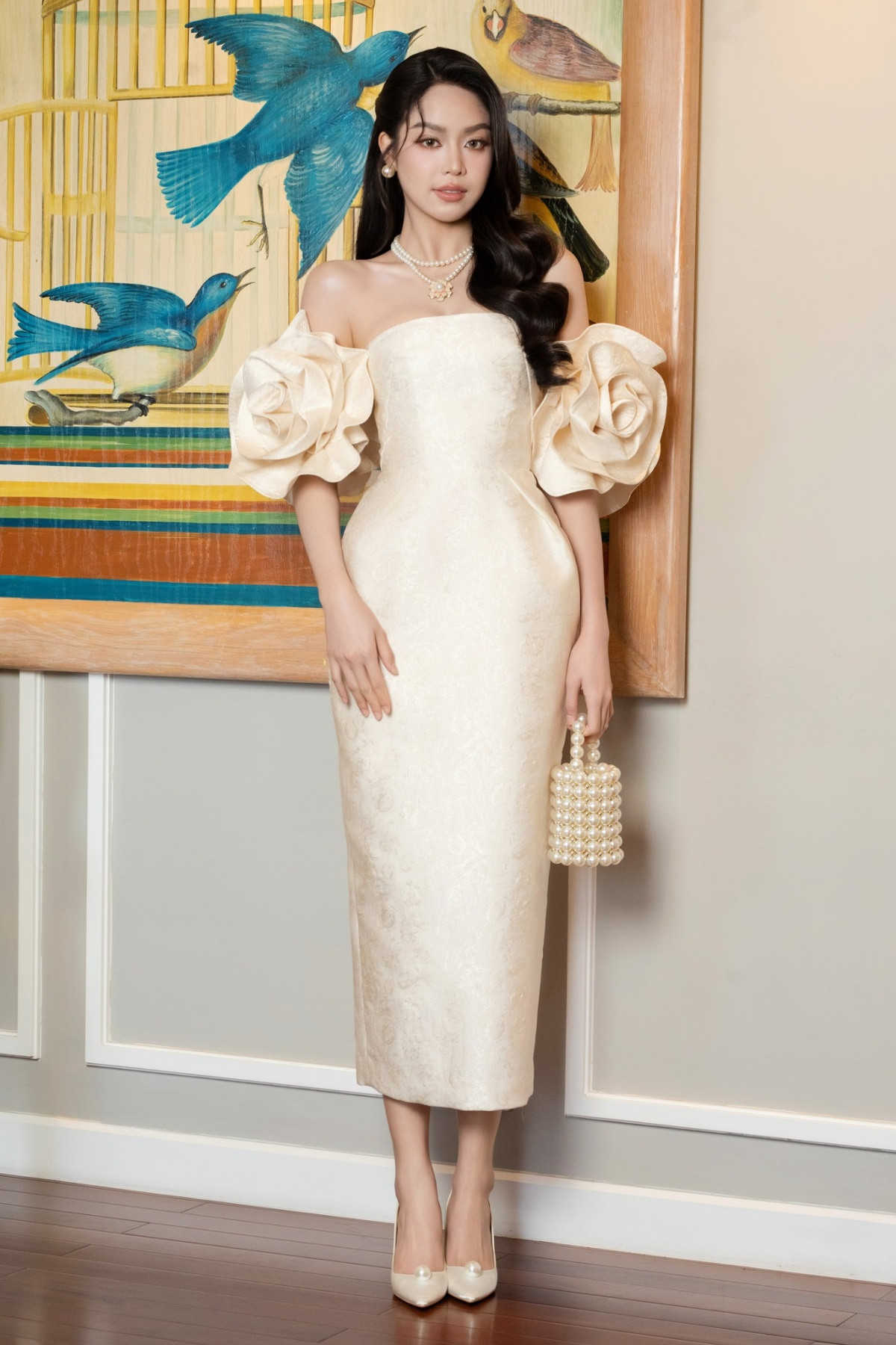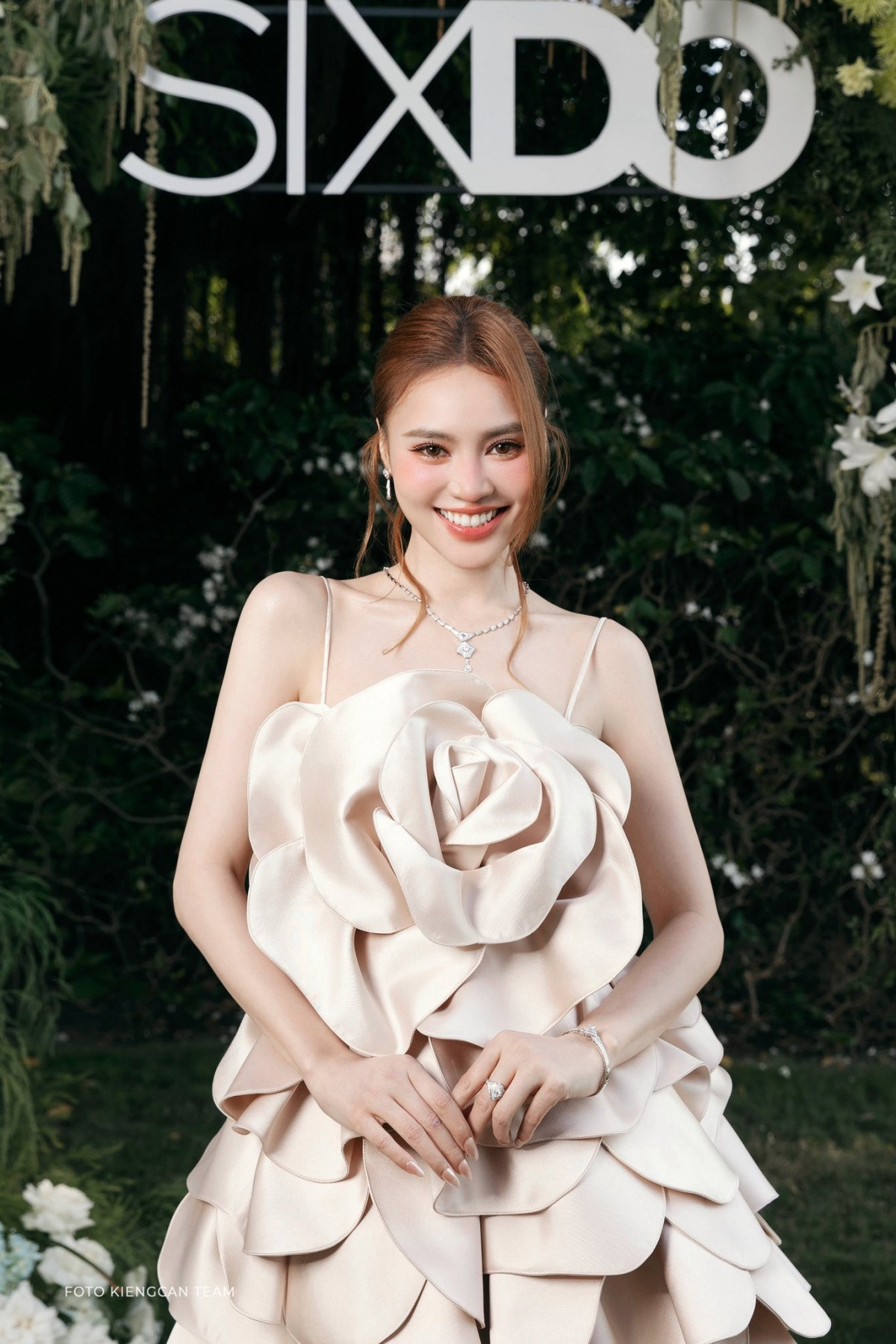Ninh Dương Lan Ngọc xinh đẹp rạng ngời trong thiết kế độc đáo lấy cảm hứng từ hoa hồng, khoe đôi chân thon dài thẳng tắp. Thiết kế giới hạn (limited) thuộc BST Neutral Premium mới ra mắt của NTK Đỗ Mạnh Cường và thương hiệu SIXDO. Xứng danh “ngọc nữ” của làng điện ảnh Việt, dù đã 35 tuổi, nhan sắc của Lan Ngọc vẫn vô cùng trẻ trung rực rỡ.