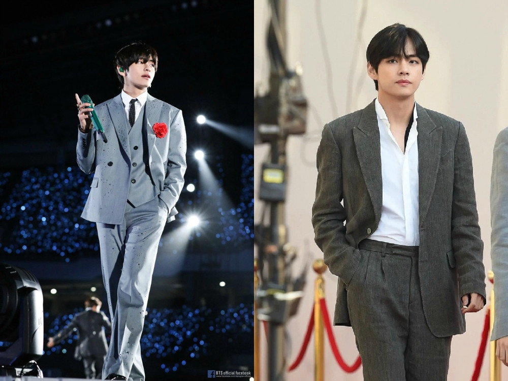 Suit ghi chứ gì, thì thỉnh thoảng cũng phải diện phong cách lịch lãm để mọi người biết mình 25 tuổi rồi! Chứ mặc mấy gam màu kia, ai mà đoán nổi tuổi của V đâu.
