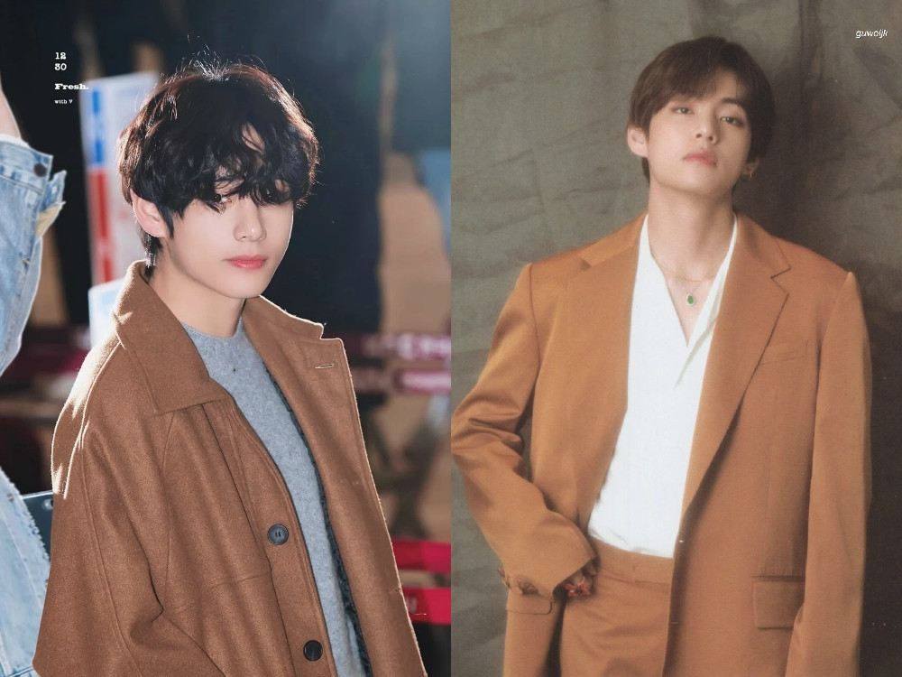 Gam nâu hợp với người già hơn nhỉ? Đúng là V mặc gam màu này trông chững chạc hơn hẳn, nhưng bảo già đi thì thật sự V chẳng già đi tí ti nào với gam màu này.