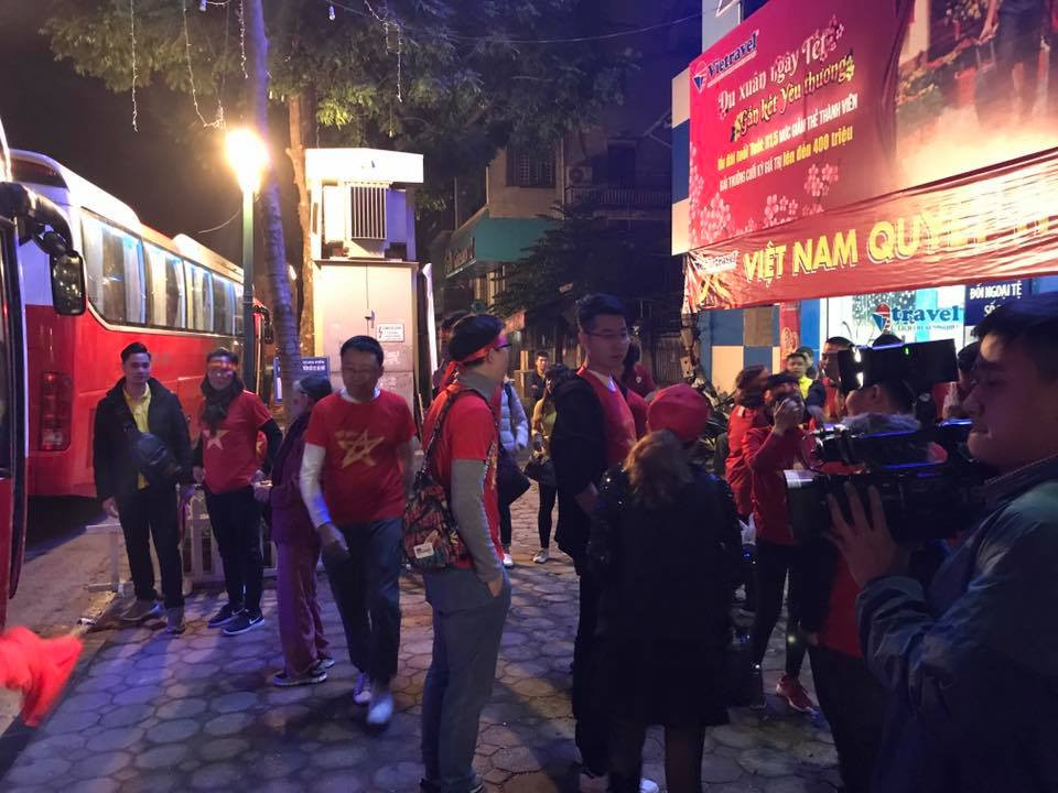 4g30 sáng 27/1, đoàn CĐV Việt Nam lên xe tiến thẳng ra Sân bay Nội Bài (Hà Nội) để bay sang Thường Châu, Trung Quốc.
