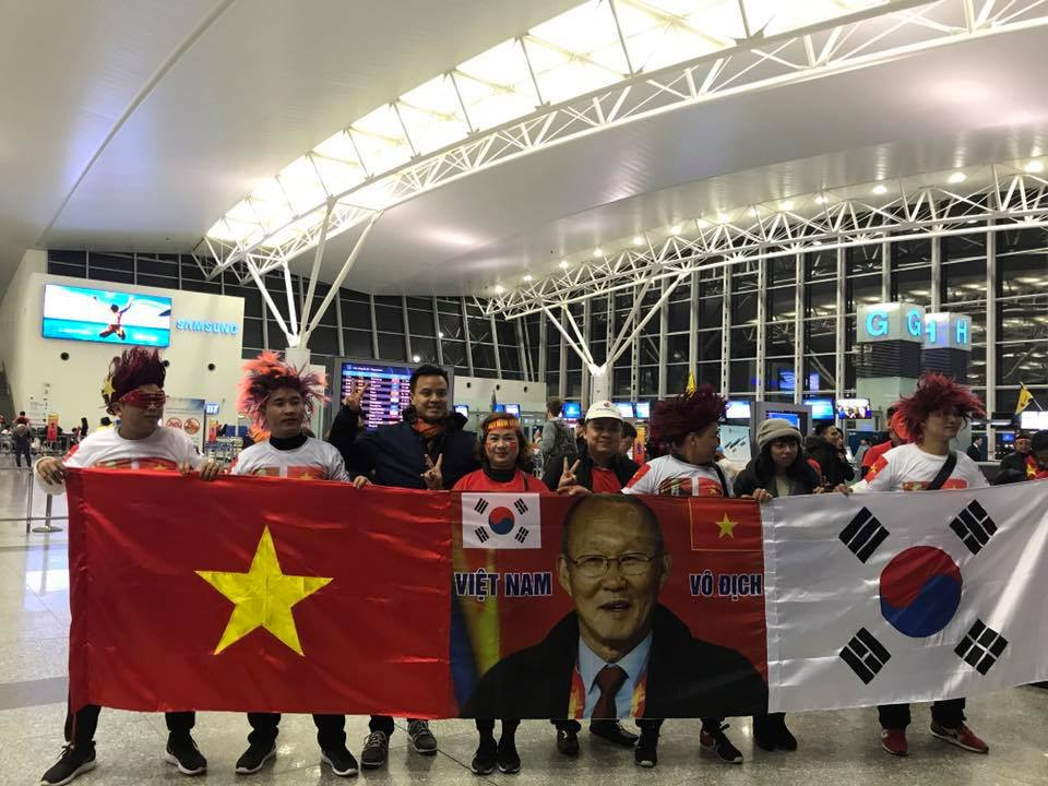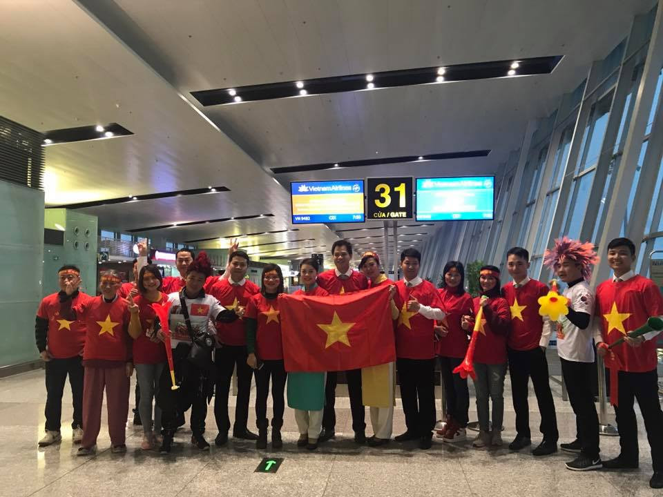 Tại Sân bay Nội Bài, ai nấy đều hào hứng và mang niềm tin, tinh thần bất diệt để sang cổ vũ cho các chàng trai U23 Việt Nam trong trận chung kết lịch sử.