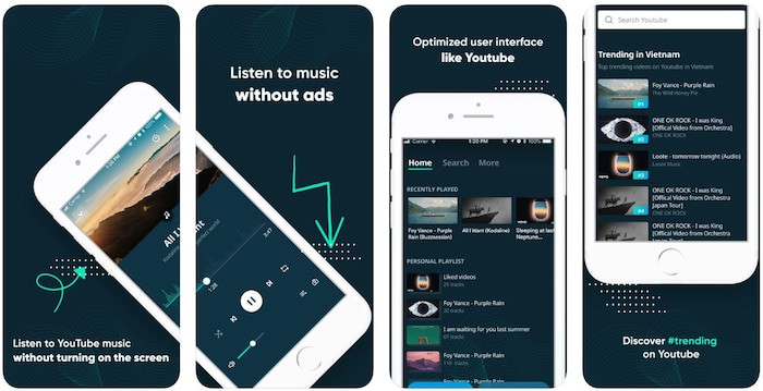 Một trong những ứng dụng đáng chú ý nhất hiện tại là YouListen. Ứng dụng này sẽ giúp bạn nghe nhạc, truyện, audio, theo dõi podcast hay tất cả mọi thứ trên YouTube mà không cần mở sáng màn hình thiết bị.