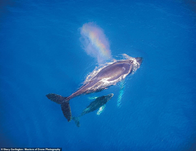 Stacy Garlington, một nhiếp ảnh gia người Hawaii nói về bức ảnh đầy ngẫu nhiên về hai mẹ con cá voi “Nó là một bức ảnh ngẫu nhiên. Tôi không nhìn thấy cầu vồng khi tôi điều khiển máy bay mà chỉ phát hiện ra khi nhìn vào hình ảnh trên màn hình máy tính sau đó. Tôi sửa rất ít bức ảnh của mình. Tôi thường thêm họa tiết cho tất cả các bức ảnh của mình, nhưng ở đây, tôi chỉ tăng sự rõ nét trên lưng cá voi, dọc theo vây lưng, trên bề mặt nước.”