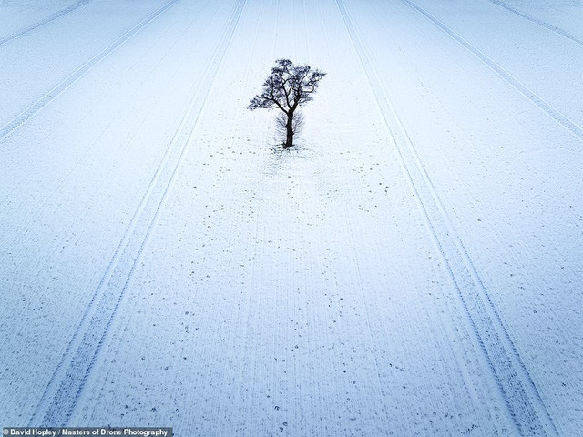 Nhiếp ảnh gia David Hopley chụp bức ảnh ấn tượng về một cái cây đứng cô đơn trên cánh đồng gần nhà vào một buổi chiều lạnh giá. Ông nói rằng nhiệt độ lạnh khiến máy tính bảng của ông bị treo và ông mất liên lạc với chiếc máy bay không người lái. May mắn thay, ông vẫn kiểm soát được thông qua cần điều khiển một cách an toàn.