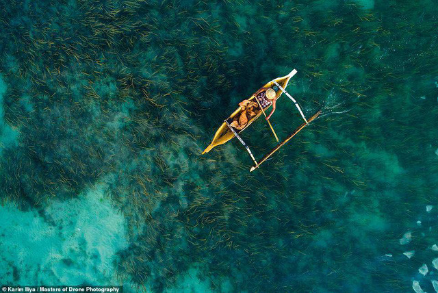 Karim Iliya sử dụng máy bay không người lái để chụp bức ảnh về người ngư dân Indonesia đang trôi trên một biển cỏ cùng chiếc thuyền câu cá của mình. Nhiếp ảnh gia nói rằng ông thấy “những người làm việc hoặc chơi thể thao thường ít chú ý đến chiếc máy bay không người lái để tập trung cho công việc của họ”