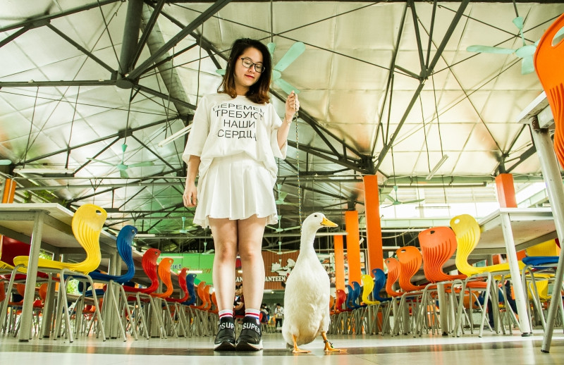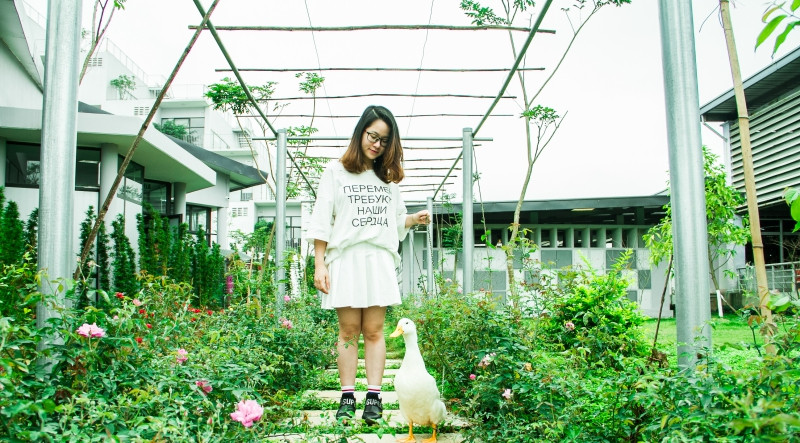 Những chú vịt dễ thương được thả đi lại tự do trong khuôn viên trường, sinh viên nhà trường thường cho vịt ăn và chụp ảnh cùng vịt khi bắt gặp các “em thú cưng” lạch bạch xung quanh trường.