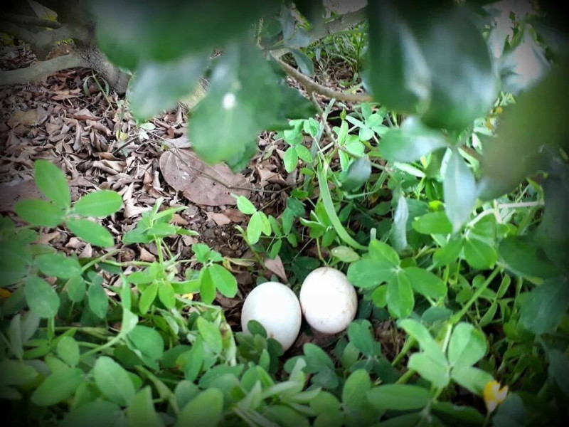 Đôi khi, các bạn sinh viên còn tình cờ tìm thấy những quả trứng xinh xắn như thế này trong lùm cây. Chụp một kiểu ảnh kỉ niệm và chờ đợi vài ngày sau, bạn sẽ có cơ hội trông thấy đàn vịt non lông vàng ươm, bám theo ba mẹ dạo chơi trong trường.