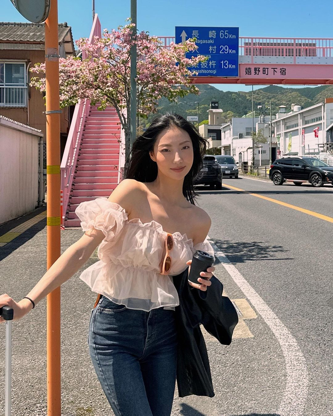 Cô chuộng các trang phục đơn giản, phối đồ thông minh để khoe khéo vòng eo thon và đôi chân dài. Các set đồ đời thường của Ji An không có thiết kế cầu kỳ nhưng vẫn giúp cô toát lên nét phóng khoáng, quyến rũ.