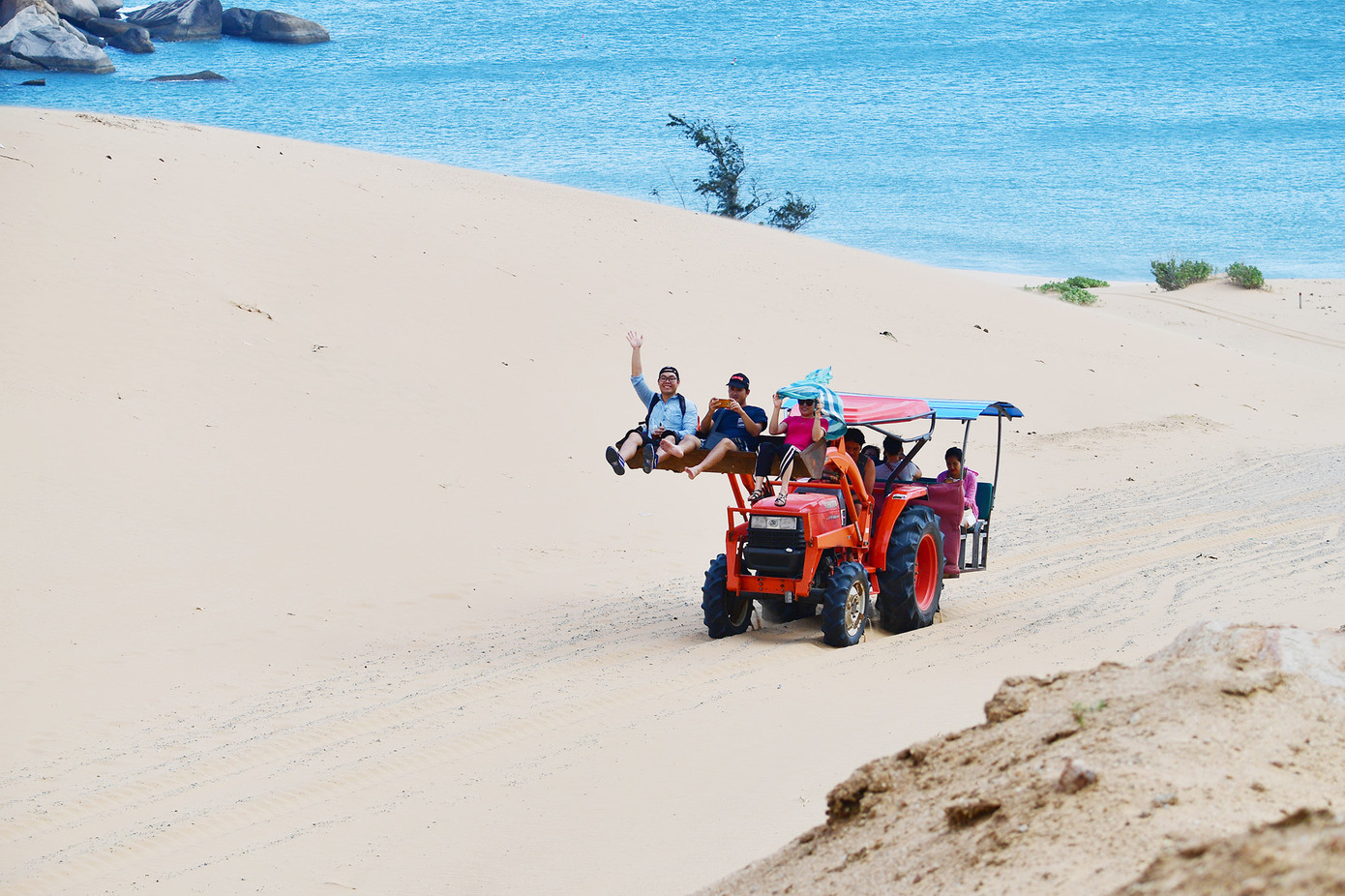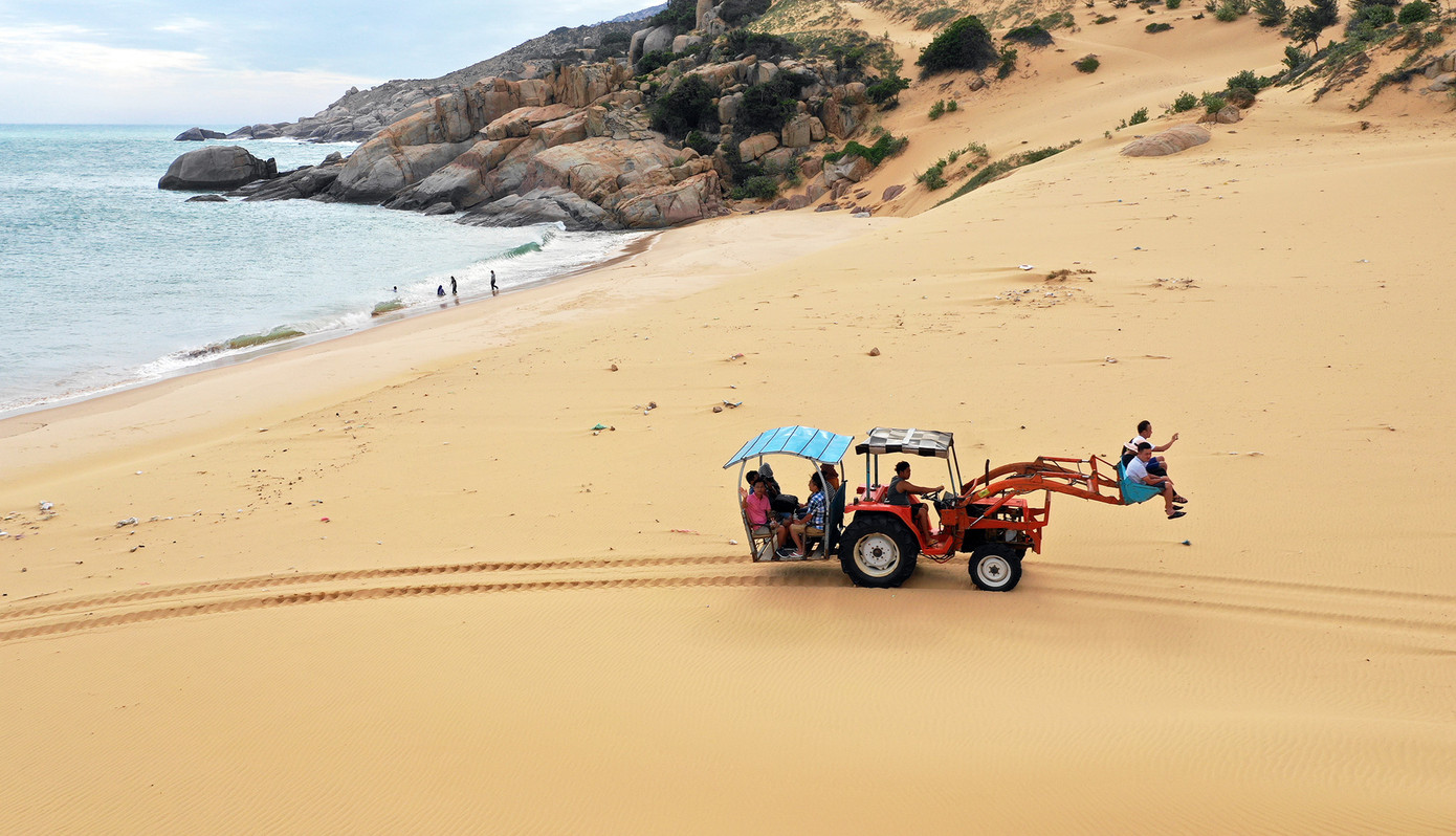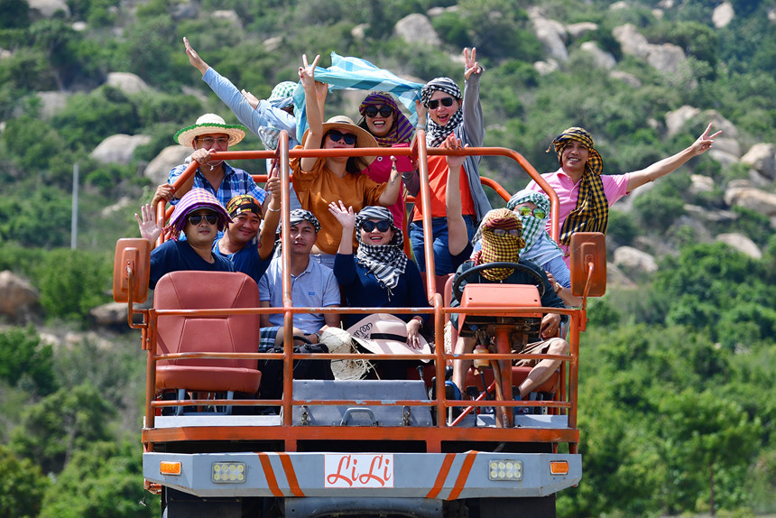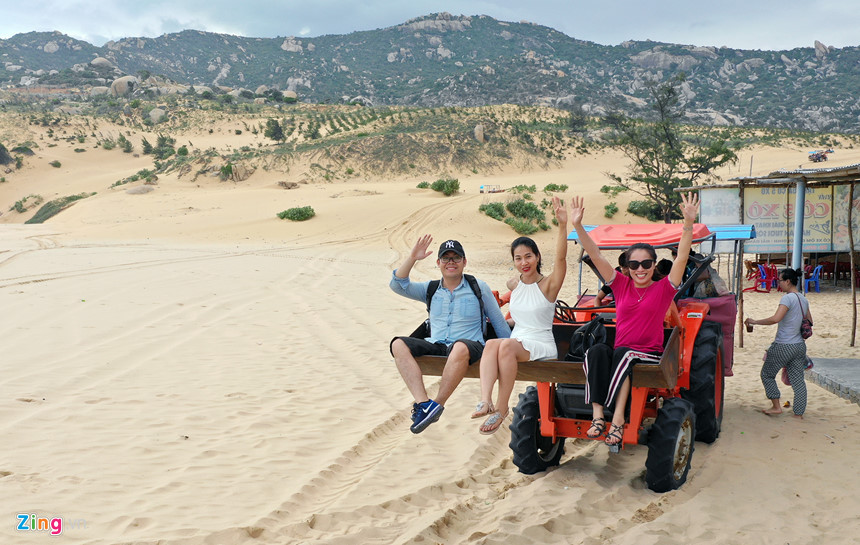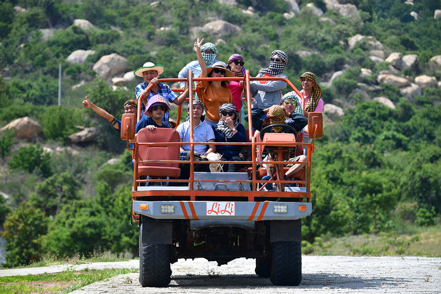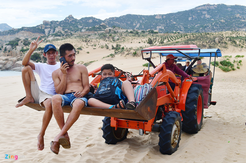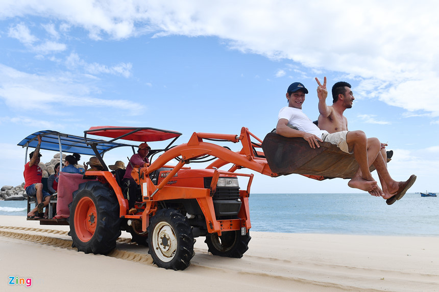 Máy cày chở người gây hứng thú cho du khách ở Mũi Dinh