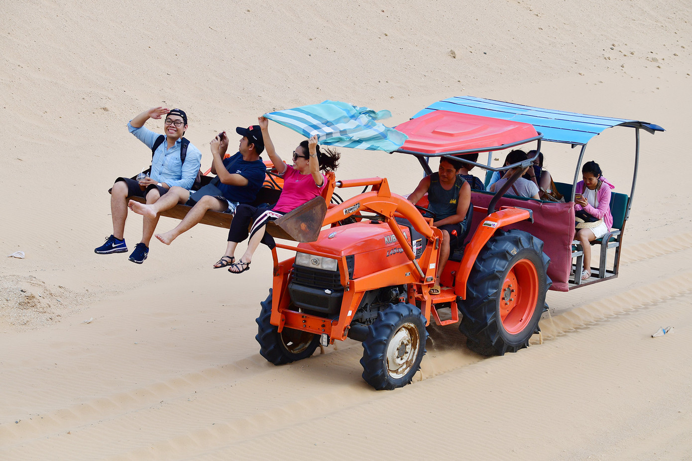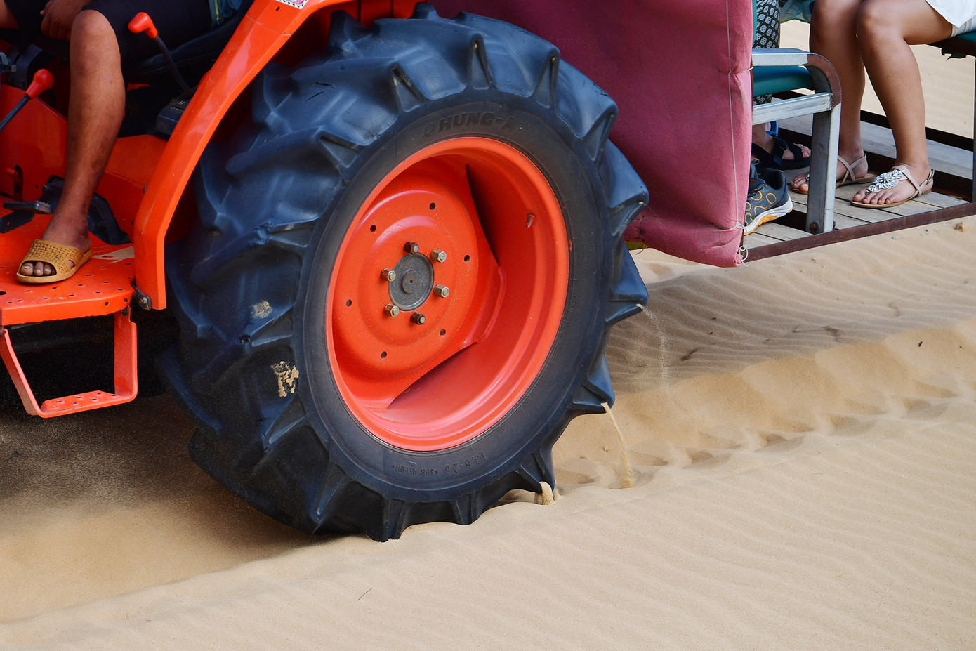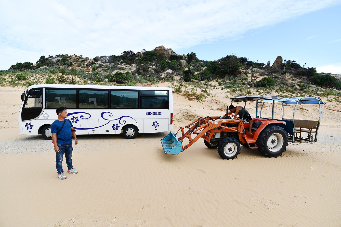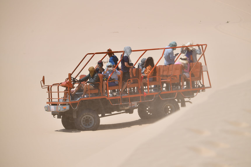 Máy cày chở người gây hứng thú cho du khách ở Mũi Dinh