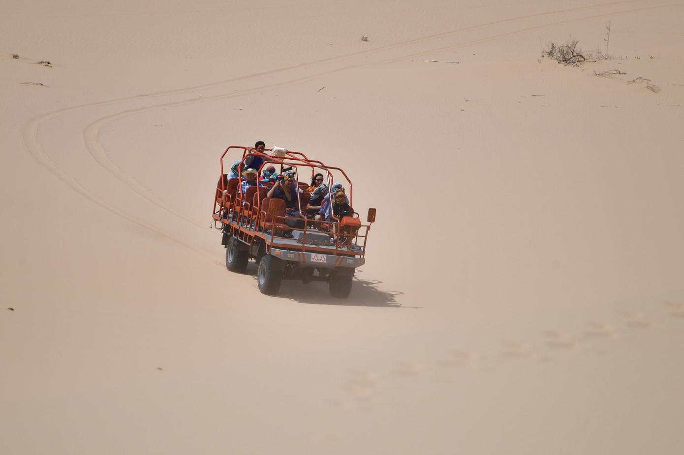 Cũng tại Mũi Dinh, trong khu du lịch Tanyoli, xã Phước Dinh, huyện Thuận Nam (Ninh Thuận) còn có dịch vụ chở khách độc đáo khác, đó là dùng xe tải đặc chủng. Người dân nơi đây gọi là "bọ hung trên cát" bởi xe này rất khỏe, dùng để chở cùng lúc khoảng 15-20 người. Bọ hung chạy lòng vòng lên xuống các đồi cát dễ dàng mà không sợ bị lật. Tất nhiên, ở những đoạn có độ dốc cao, tài xế sẽ không dám đi. Tới đoạn gần đỉnh, xe dừng lại cho du khách nhảy xuống chơi đùa trên nền cát trắng và thưởng thức khung cảnh thiên nhiên tuyệt đẹp. Sử dụng dịch vụ này, chi phí mỗi người khoảng 150.000 đồng.