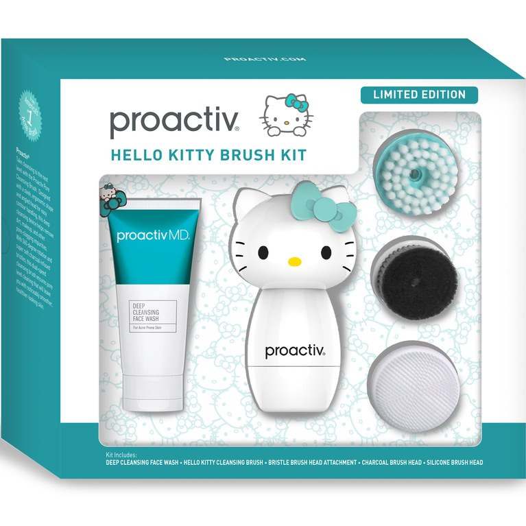 Cụ thể, Proactiv sẽ bắt tay với Sanrio để cho ra đời một bộ sản phẩm chăm sóc da mặt gồm một máy rửa mặt (với thiết kế Hello Kitty vô cùng đáng yêu và dễ thương), đi kèm theo đó là ba đầu cọ rửa để người dùng có thể thoải mái lựa chọn cho những mục đích chăm sóc da khác nhau: Đầu silicon để tẩy da chết, đầu sợi tổng hợp than đen làm trắng da, đầu cọ lông mềm để rửa sạch sâu. Bộ sản phẩm còn có thêm một hộp sữa rửa mặt ngừa mụn đi kèm.