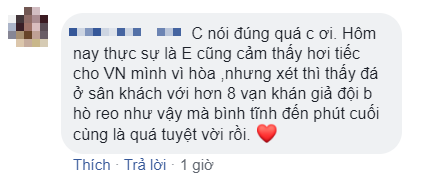 Thực ra, tỉ số hòa 2-2 trên sân khách cũng là một kết quả khả quan cho đội tuyển Việt Nam. Chúng ta còn trận chung kết lượt về trên sân nhà Mỹ Đình nữa. Hãy cổ vũ, động viên cho đội tuyển của chúng ta!