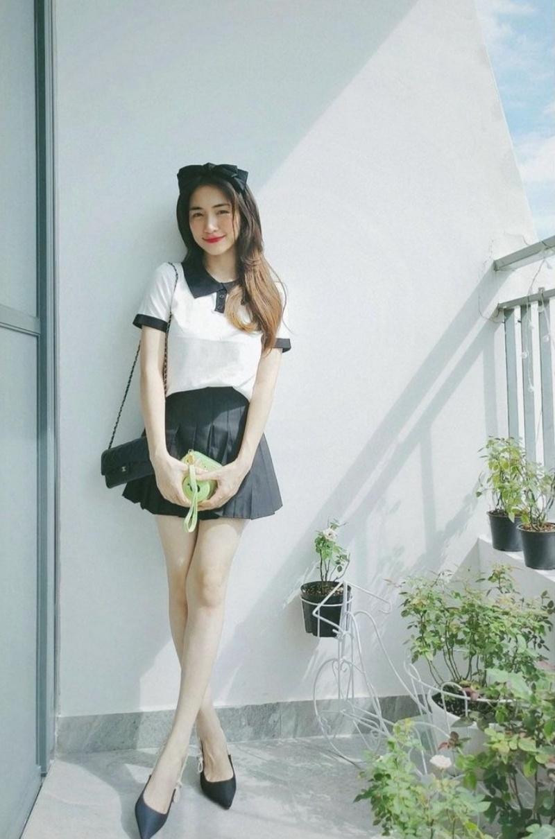 Chân váy tennis có lẽ chính là món đồ được Hòa Minzy yêu thích nhất dạo gần đây vì kiểu dáng trẻ trung, năng động. Không chỉ vậy, chân váy tennis còn phù hợp với những cô nàng có chiều cao khiêm tốn, khiến chân dài hơn trông thấy.