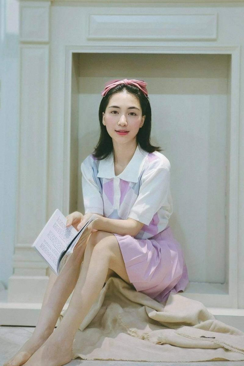 Mẹ bỉm còn biến hóa đa dạng style với váy tennis màu hồng mix cùng áo polo như nữ sinh trung học.