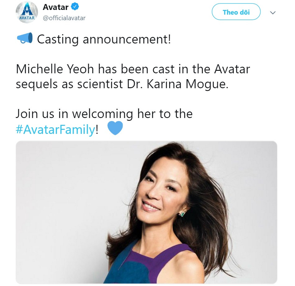 Ngày 15/4, truyền thông Mỹ đưa tin nữ diễn viên người Malaysia gốc Hoa Dương Tử Quỳnh sẽ tham gia vào phần 2 của Avatar. Trang Twitter của bộ phim cũng đăng bài chào mừng Dương Tử Quỳnh gia nhập "gia đình".