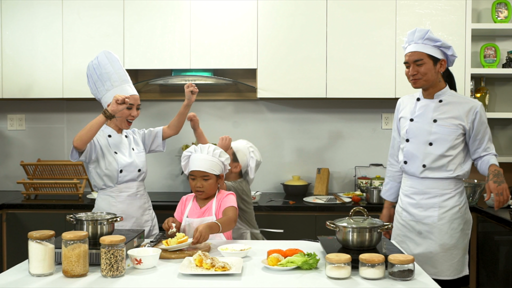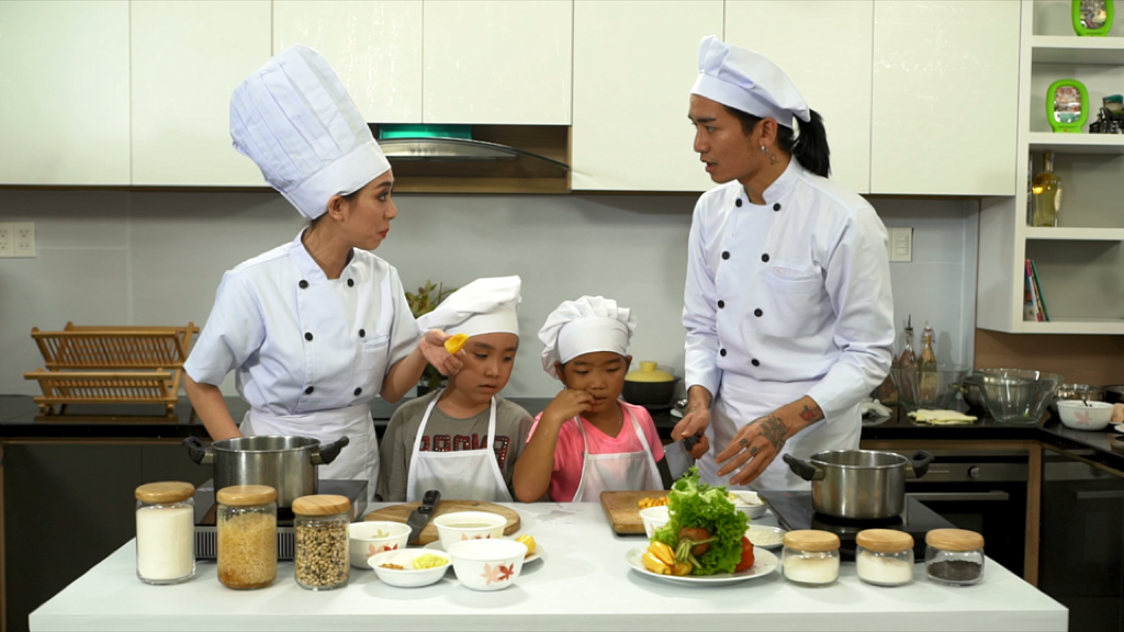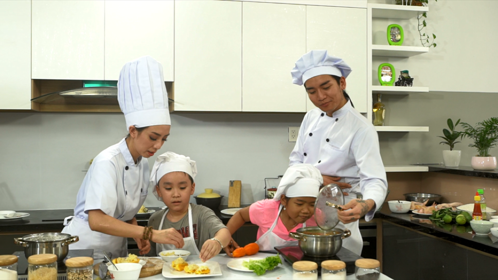 Tiến Luật cũng dí dỏm chia sẻ: "Nhiều bậc phụ huynh vẫn hay sợ con bị phỏng hay đứt tay khi vào bếp, nhưng gia đình Luật thì luôn khuyến khích con tìm tòi và học hỏi. Xem chương trình Vua đầu bếp nhí phiên bản Mỹ mà mình cực kì nể phục, các bé tuổi mới có 8 - 10 tuổi mà nấu các món ăn cực kì khó. Thế nên, Luật cũng ủng hộ vợ hết lòng trong dự án này."