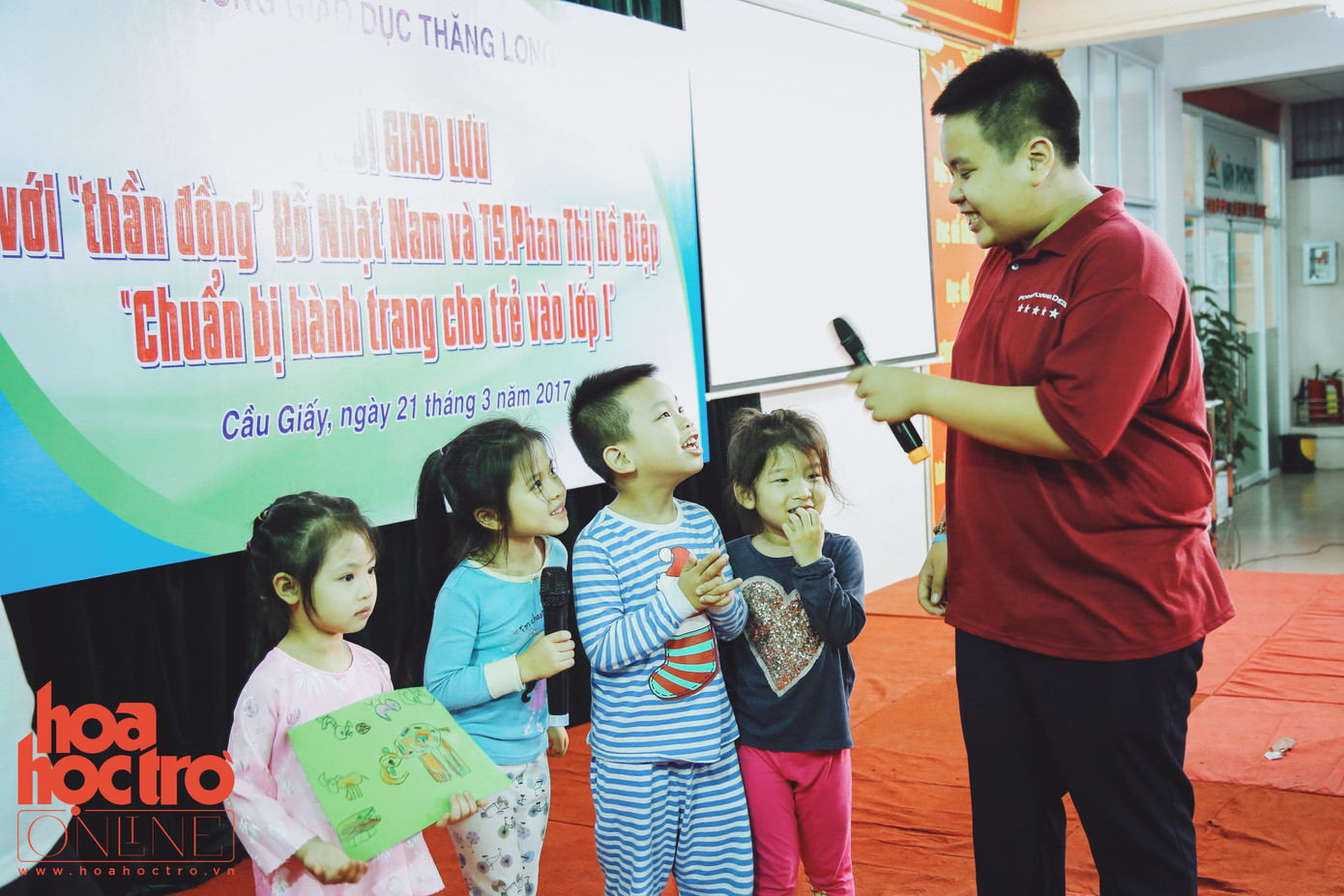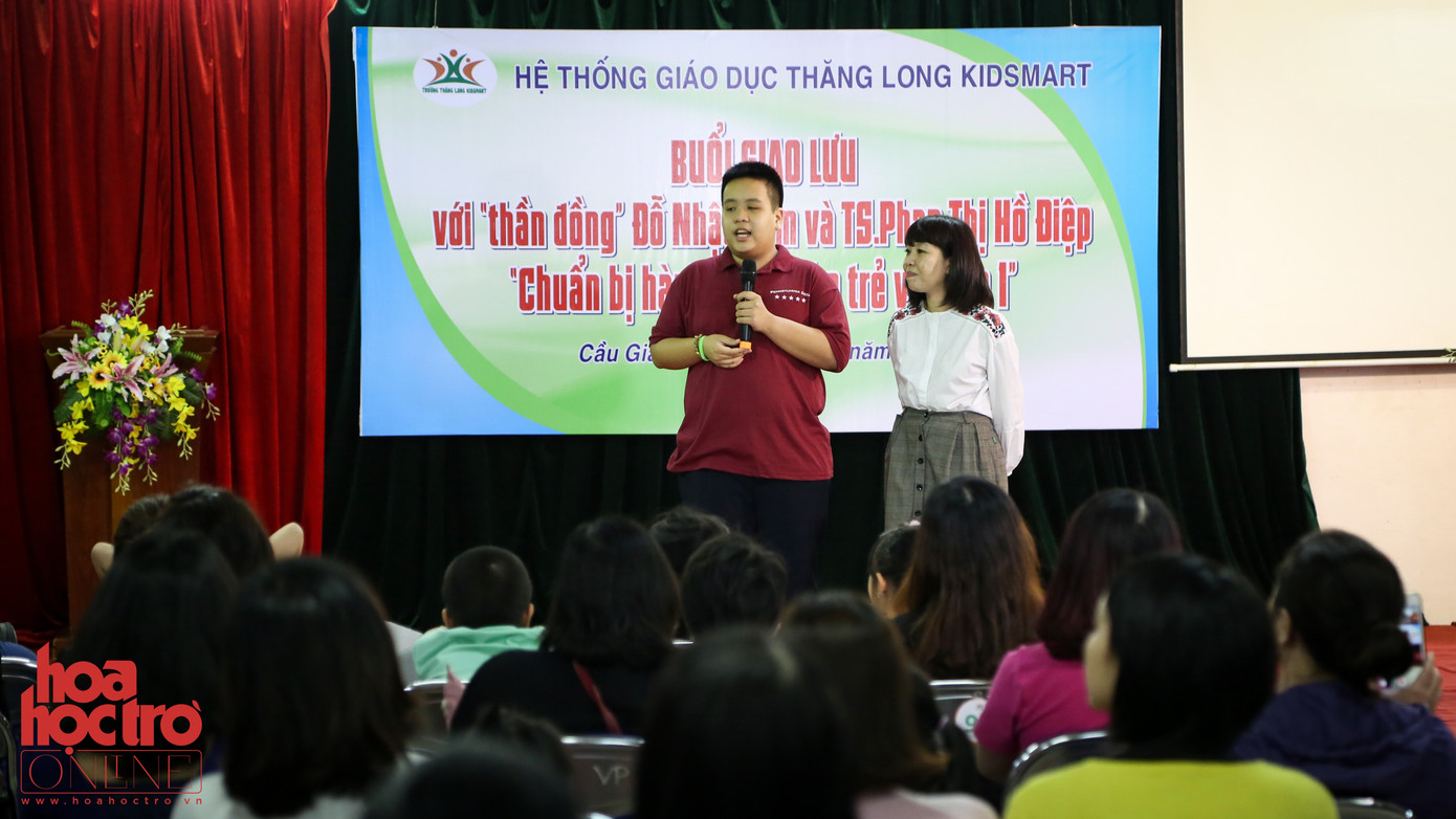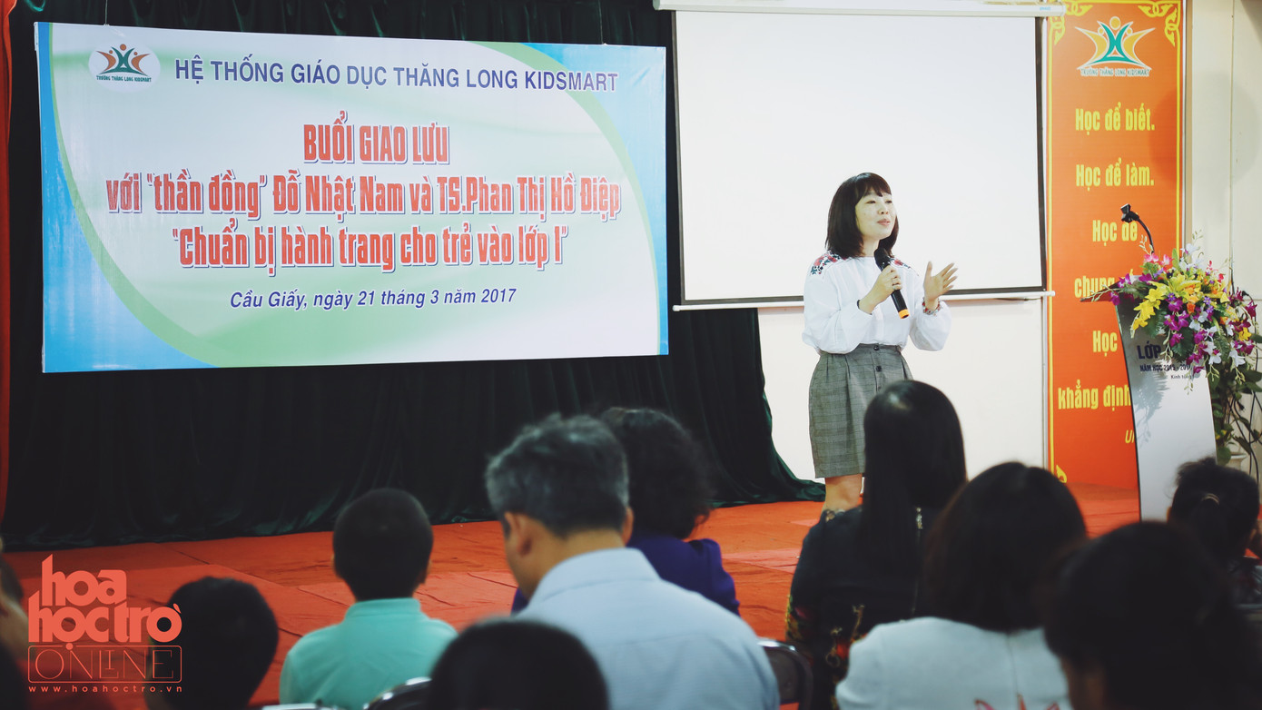 Đến dự buổi giao lưu là hàng trăm phụ huynh cùng học sinh Hệ thống Giáo dục Thăng Long Kidsmart đang chuẩn bị bước vào năm đầu tiên của bậc Tiểu học với những bỡ ngỡ, lo âu. Tiến sĩ Phan Thị Hồ Điệp, mẹ em Đỗ Nhật Nam đã chia sẻ câu chuyện những ngày chuẩn bị cùng Nam vào lớp một như thế nào, không phải với tư cách một vị phụ huynh mà là người bạn đồng hành của con. Mẹ của Nhật Nam cũng trả lời những câu hỏi được quan tâm như có nên cho con học trước không, bao nhiêu tuổi học Ngoại ngữ là phù hợp…