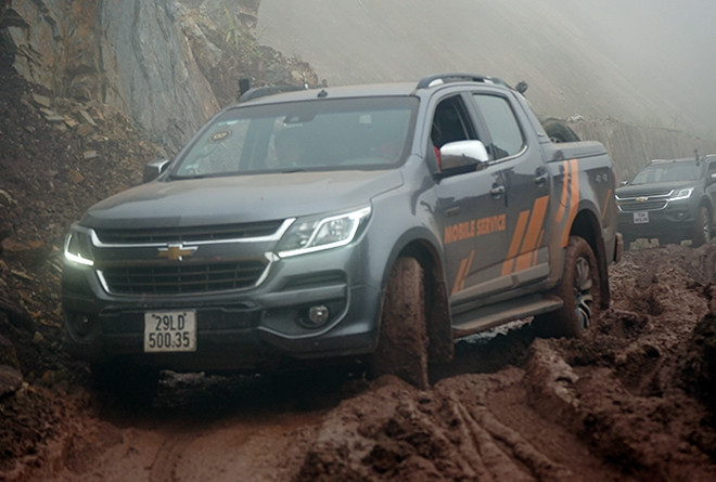 Nguyên tắc là đi chậm, đặt chế độ hai cầu (4H/4L), ga đều, bật khóa vi sai. Tuyệt đối tránh để 2 lốp cùng trục rơi xuống hai hố cùng lúc.