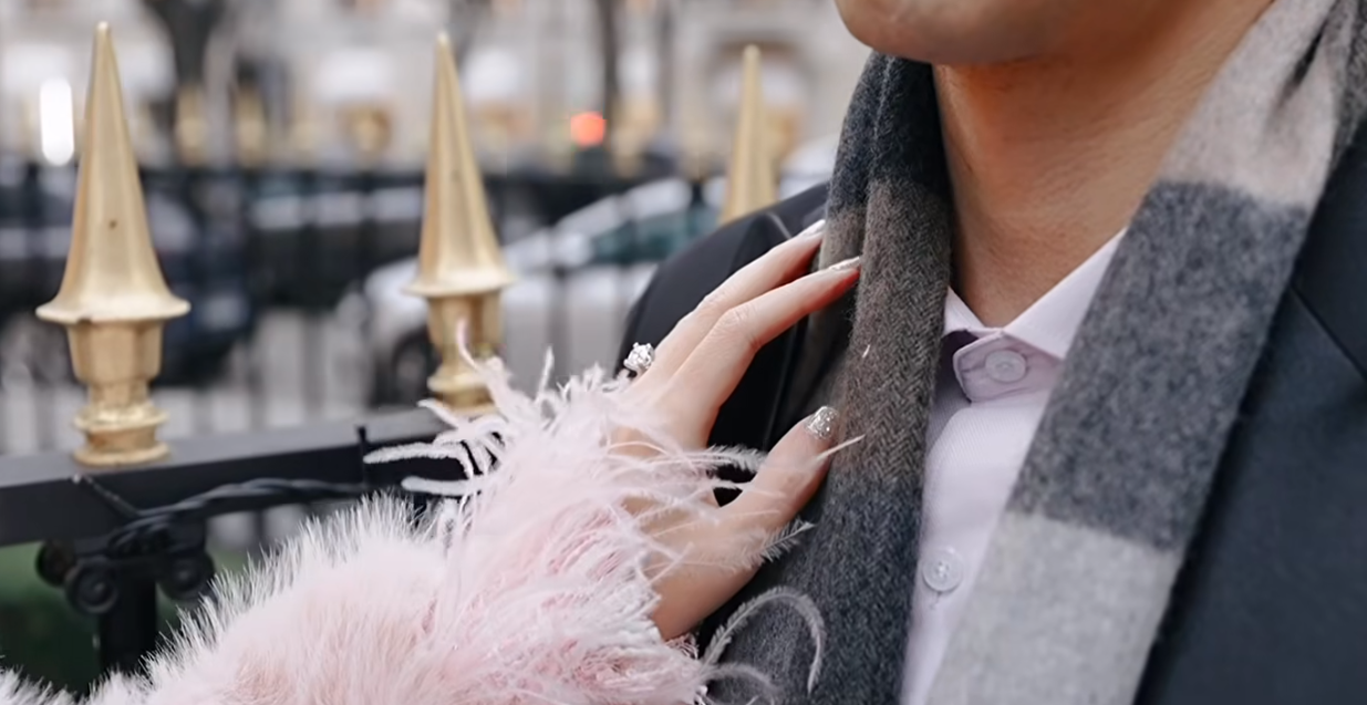 Tuy nhiên, netizen lại chú ý đến bàn tay của Midu khi cô không đeo chiếc nhẫn nào. Trong khi đó, ở video sang Pháp chọn váy cưới cùng chồng sắp cưới, Midu đã có nhiều cảnh quay cận bàn tay trái để lộ chiếc nhẫn đính hôn có viên kim cương cực lớn.
