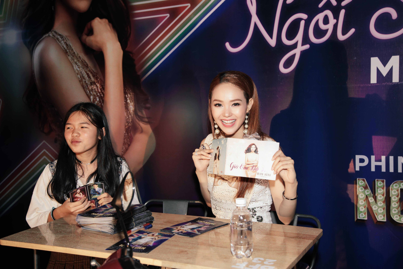 Buổi họp báo còn mang đến không khí vô cùng hào hứng khi Minh Hằng thể hiện ca khúc Ngôi sao cô đơn cùng một fan nữ của mình. Ngoài ra, đến chúc mừng Minh Hằng còn có các đồng nghiệp như Trương Ngọc Ánh - nhà sản xuất phim Sắc đẹp ngàn cân, đạo diễn James Ngô, Nguyên Vũ, Âu Bảo Ngân, Tray Nguyễn…
