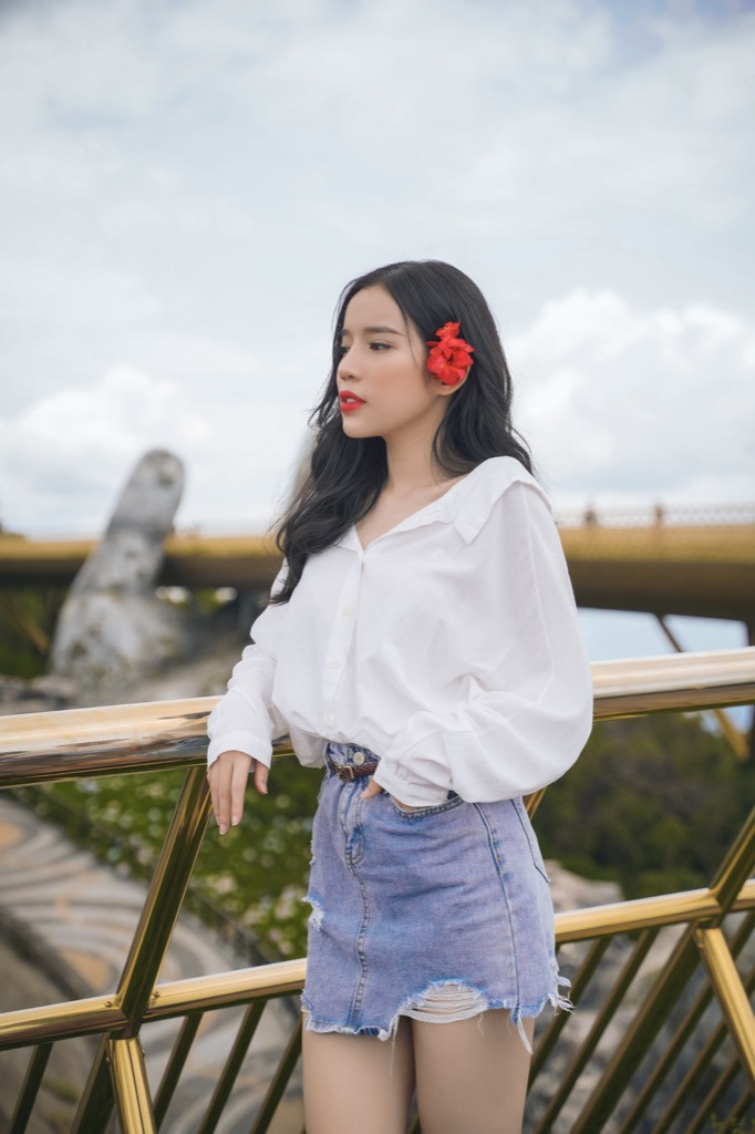 Lyly xinh đẹp tạo dáng ở Cầu Vàng, Đà Nẵng