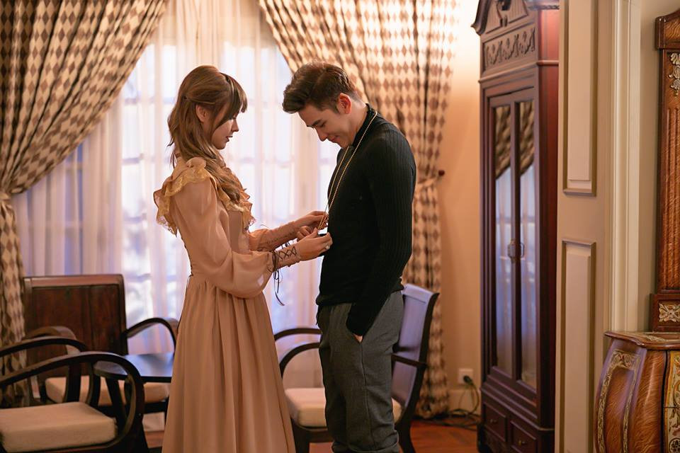 Có thể thấy, họ cùng nhau thực hiện những động tác khiêu vũ trong không gian đậm chất cổ điển. Minh Trung thể hiện phong thái “soái ca” khi khoe vẻ điển trai và ánh mắt sâu cuốn hút. Cả hai trao nhau ánh mắt đầy ngọt ngào không khác gì một cặp đôi đang yêu nhau.