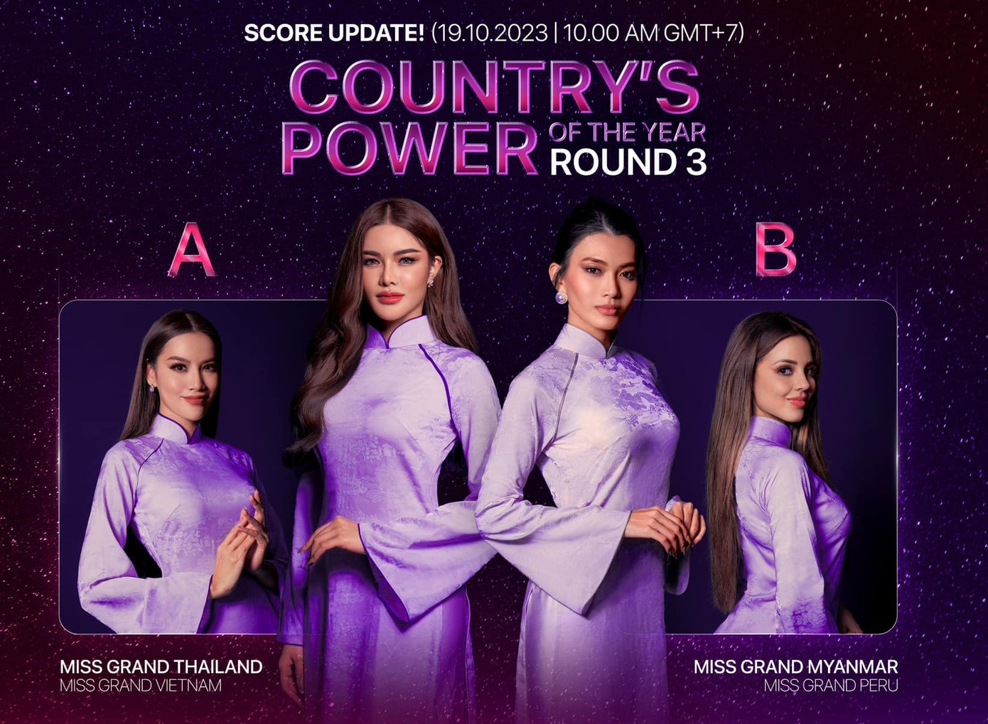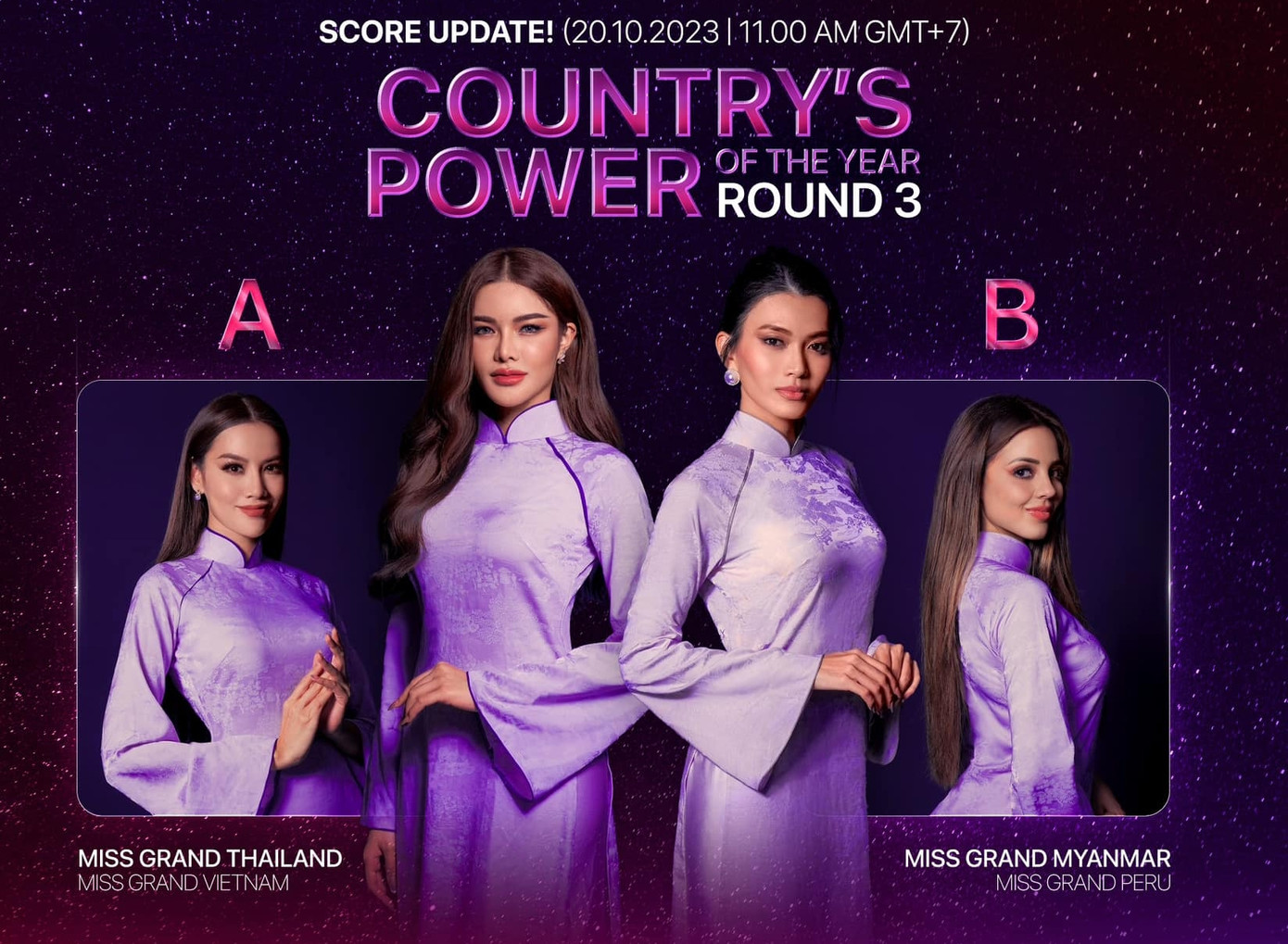 Sau khi chiến thắng vòng thứ 2 của phần bình chọn Country’s Power of The Year cuộc thi Miss Grand International 2023 cùng với các đại diện đến từ Peru, Thái Lan và Myanmar. Hoa hậu Lê Hoàng Phương được xếp vào bảng A, đối đầu với Miss Grand Thailand - Hoa hậu Thaweepon Phingchamrat.