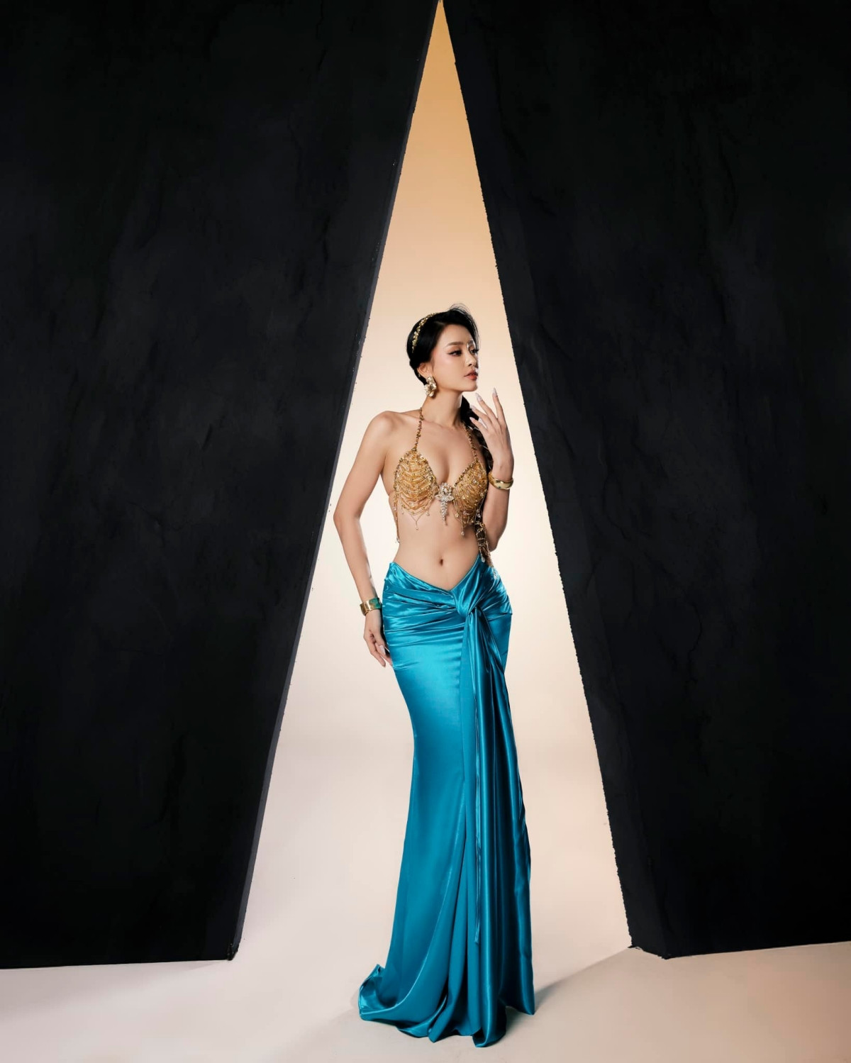 HHTO - Á hậu Bùi Khánh Linh khoe trên trang cá nhân thiết kế mang đậm phong cách “Nghìn lẻ một đêm”, đây tiếp tục là một thiết kế giúp nàng hậu khoe triệt để vòng eo nhỏ xíu.