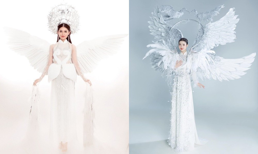 Thêm vào đó, thiết kế này cũng không phải lần đầu xuất hiện ở Miss International. Tại cuộc thi năm 2017, Á hậu Thùy Dung đã mang đến một bộ áo dài có nhiều điểm tương đồng. Cũng là trang phục trắng đơn sắc, cũng có hình ảnh hai chú cò chụm đầu vào nhau nhưng được đặt ở phía trước thân áo, sau lưng Thùy Dung cũng có cánh cò sắp xếp như đôi cánh.