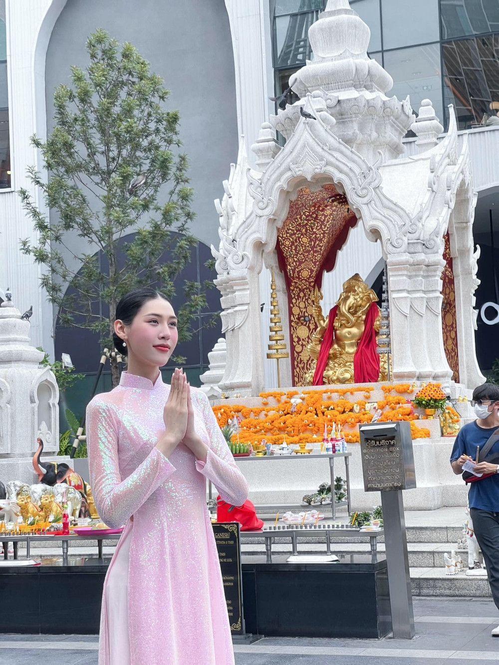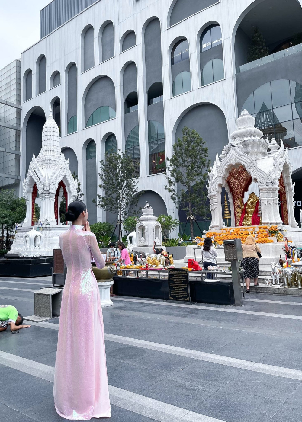 Ngay khi tới Bangkok, Dịu Thảo đã đi lễ tại một trong những địa điểm nổi tiếng của thành phố này.