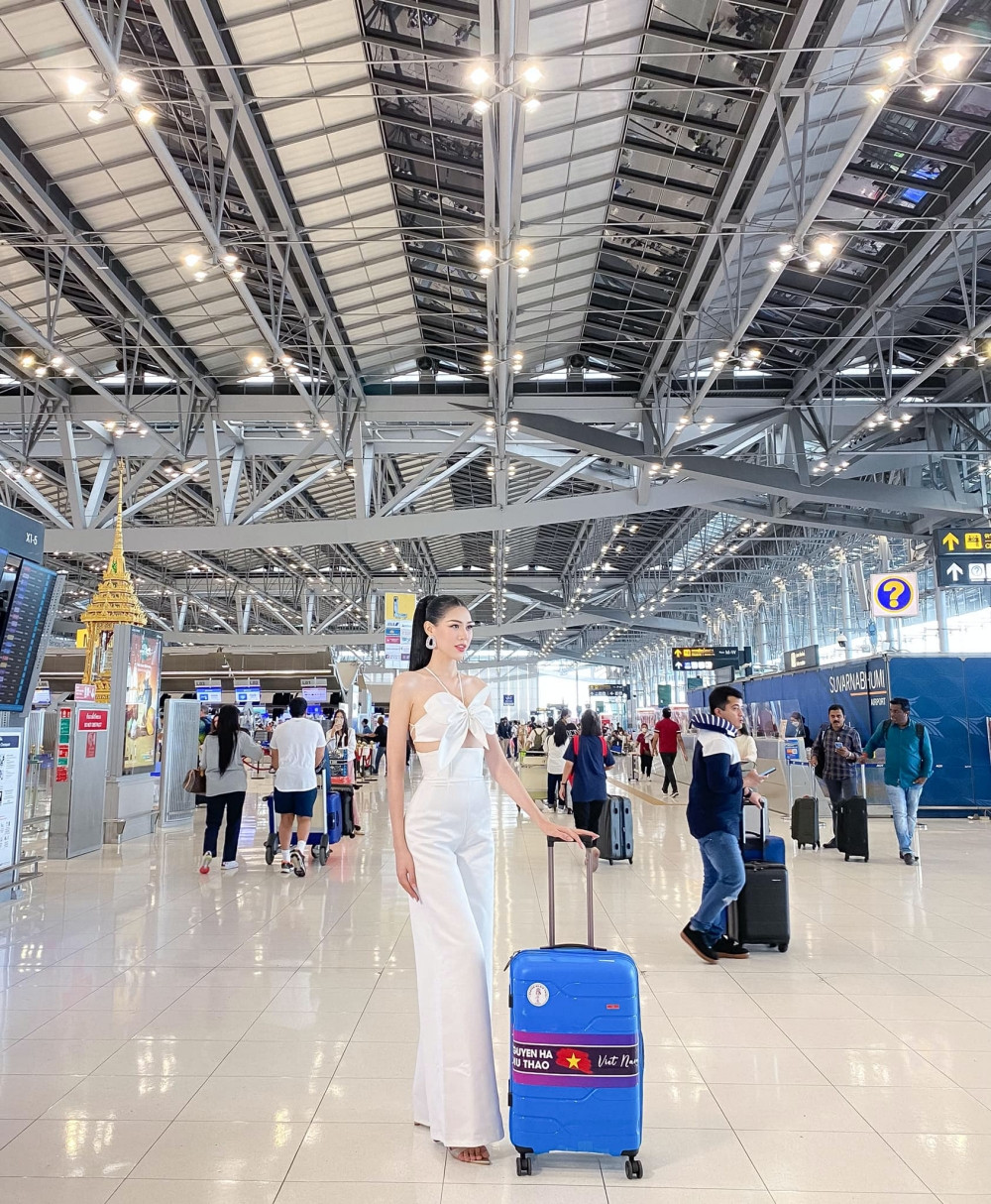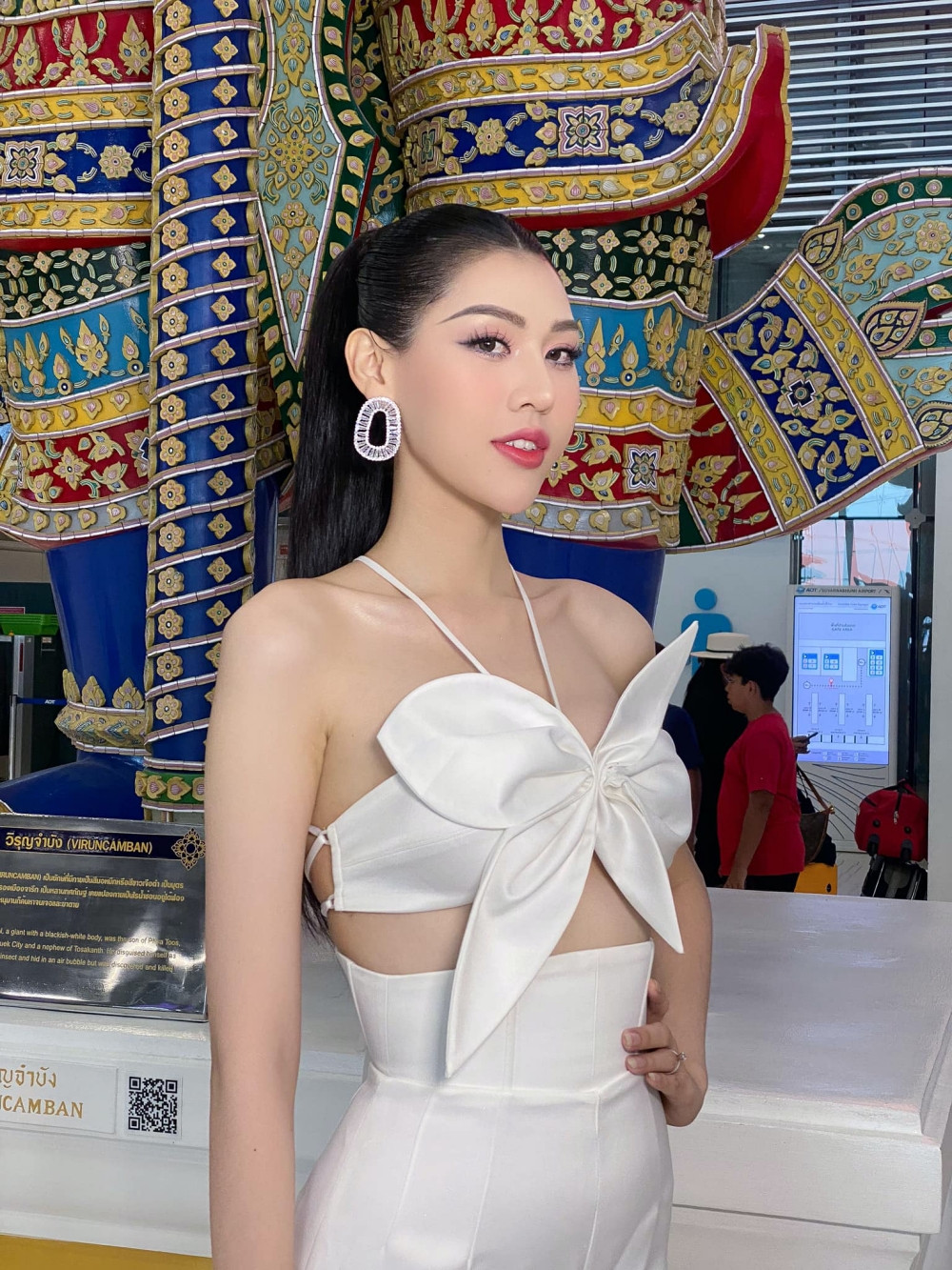 Có mặt tại Thái Lan để tham gia đấu trường nhan sắc Miss International Queen (Hoa hậu Chuyển giới Quốc tế) 2023, Nguyễn Hà Dịu Thảo gây ấn tượng ngay từ khi xuất hiện tại sân bay. Người đẹp diện trang phục mang sắc trắng, khoe trọn đôi chân dài ngút ngàn.