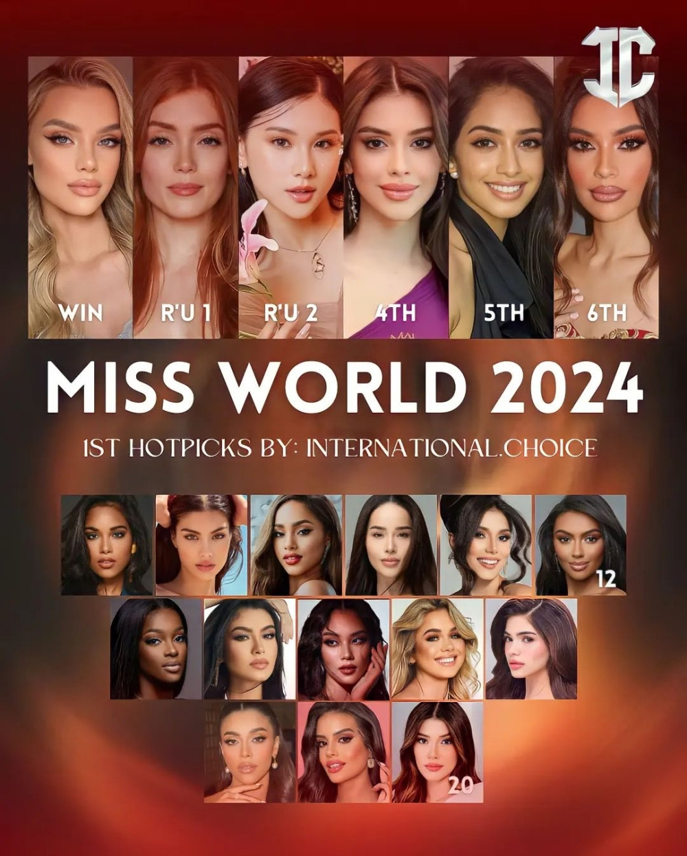 Chuyên trang International.Choice dự đoán Hoa hậu Mai Phương lọt Top 15 ở vị trí thứ 15. Người đẹp luôn được đánh giá là một trong những thí sinh mạnh của khu vực Đông Nam Á và cả châu Á.