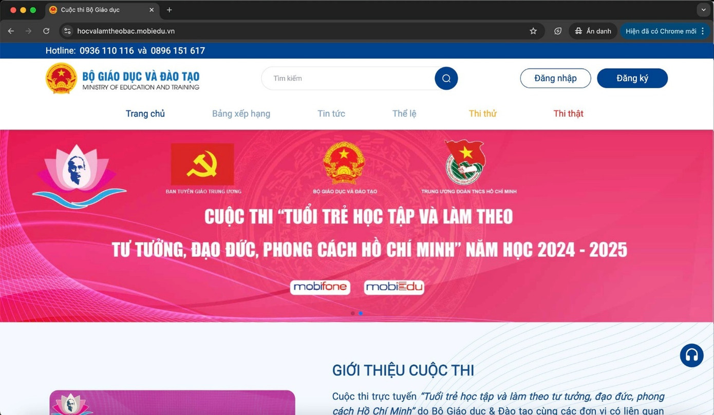 Sau 4 tháng tranh tài, cuộc thi "Tuổi trẻ học tập và làm theo tư tưởng, đạo đức, phong cách Hồ Chí Minh", với sự đồng hành của hệ sinh thái mobiEdu, đã thu hút gần 2 triệu thí sinh từ khắp các tỉnh thành. Cuộc thi không chỉ kết nối nhiều điểm cầu trên cả nước mà còn góp phần lan tỏa những giá trị tốt đẹp, khơi dậy tinh thần học tập và noi gương Bác Hồ trong cộng đồng.