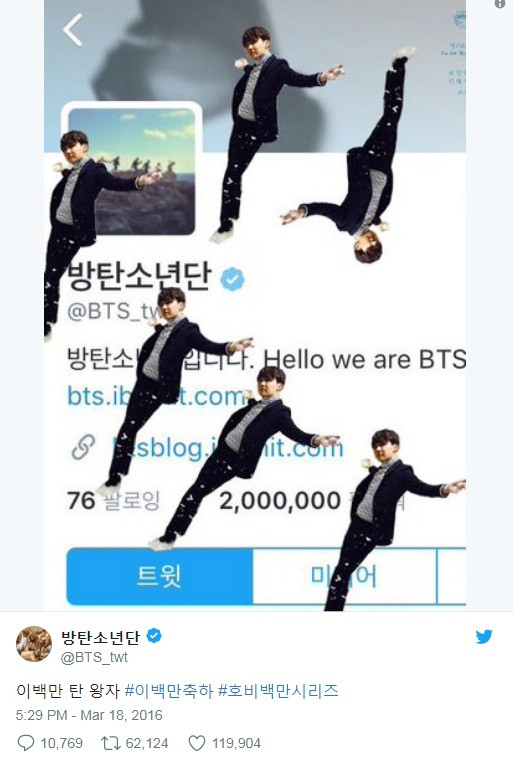 Mọi chuyện bắt đầu khi BTS có một triệu người theo dõi qua Twitter, khiến các chàng trai vô cùng phấn khích.