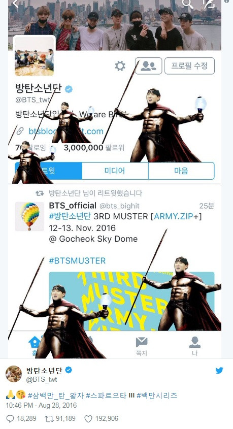 Đến cột mốc 3 triệu người theo dõi, J-Hope đã hóa thành chiến binh quả cảm cùng hashtag #Hundred10kSeries (thì 1 triệu tương ứng với 100 lần 10 nghìn mà).