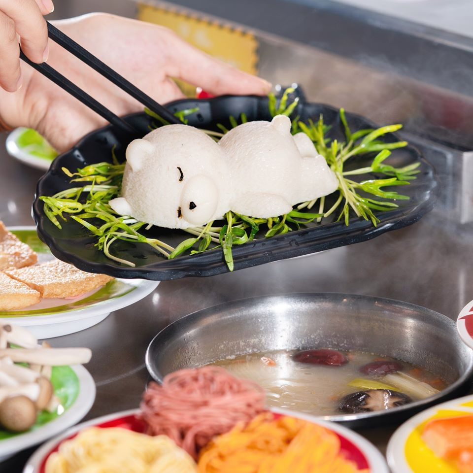 Chú gấu dài bằng khoảng bàn tay, trước khi được cho vào nồi lẩu thì đây được coi là công cụ sống ảo, ai cũng tranh thủ chụp với chú gấu béo múp xinh xắn này. Sau khi được thả lẩu thì chú gấu này sẽ giúp cho nước lẩu thêm phần thơm ngon ngậy ngậy.
