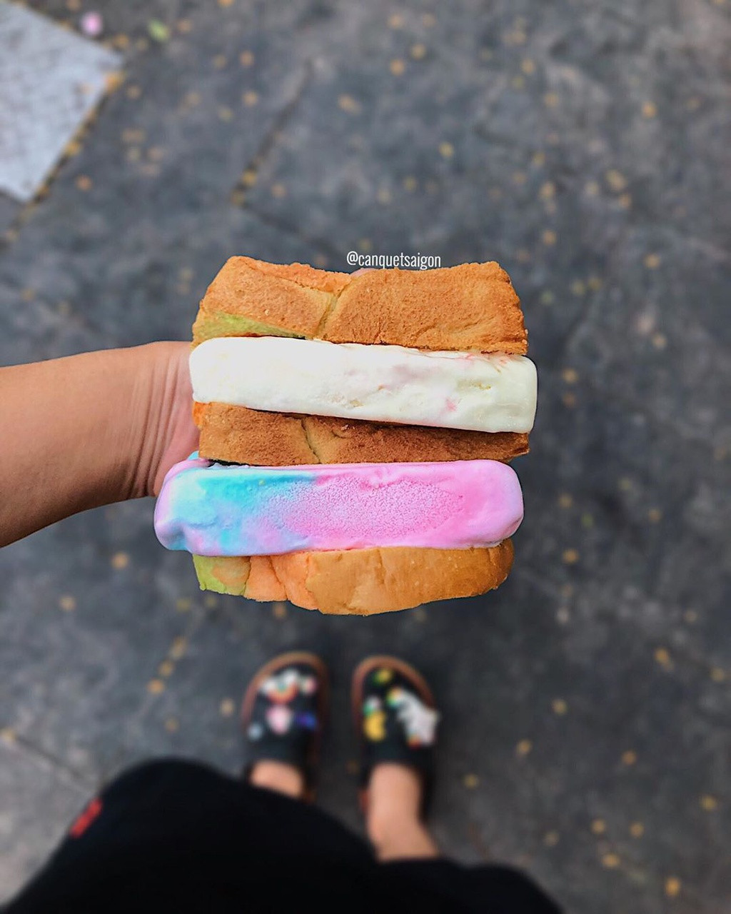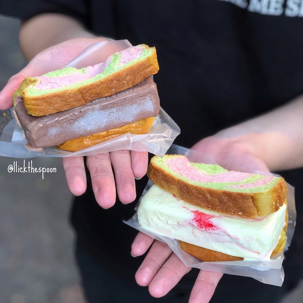 Bánh mì kẹp kem là một trong những món ăn đường phố nổi tiếng của Singapore. Tương tự bánh mì kẹp kem ở Việt Nam, món ăn vặt đến từ đảo quốc sư tử cũng được làm từ các loại nguyên liệu chính là sandwich mềm và kem tươi