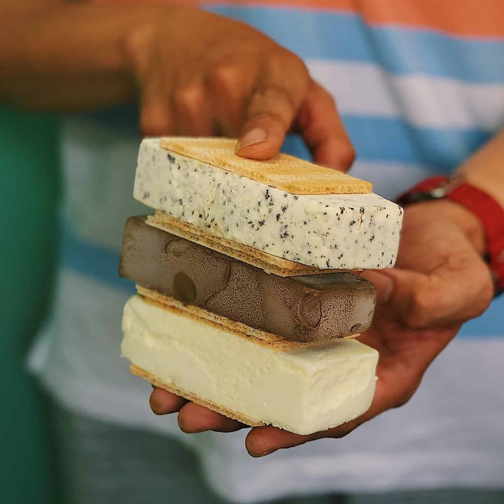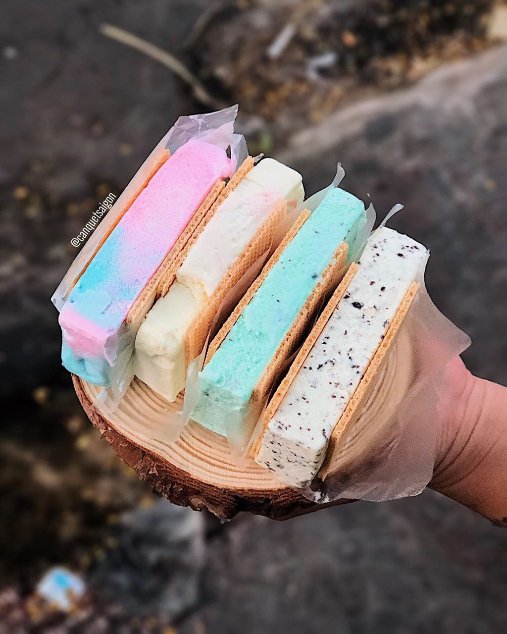 Hiện tại, cửa hàng đang bày bán 10 vị kem khác nhau như bắp, sầu riêng, chocolate, bạc hà chocolate, trái cây nhiệt đới, thạch dừa, khoai môn, phúc bồn tử, vanilla. Bạn có thể thưởng thức món kem kẹp đường phố được yêu thích nhất Singapore ngay tại TP.HCM với mức giá 25.000 đồng cho tất cả các hương vị.