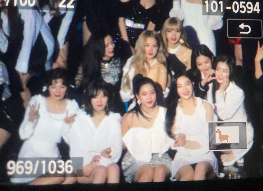 Nhóm Red Velvet được sắp xếp ngồi phía trước còn Black Pink đứng ngay phía sau. Ngay lập tức, Jennie đã ghé sát vào người Irene rồi hai cô gái tạo hình trái tim vô cùng đáng yêu. Cho dù Jennie và Irene từng nhiều lần dính phốt thái độ, nhưng cứ mỗi khi có dịp ở gần nhau thì họ lại vô cùng dễ thương, khiến cư dân mạng không ngừng ghép đôi Black Velvet với nhau.