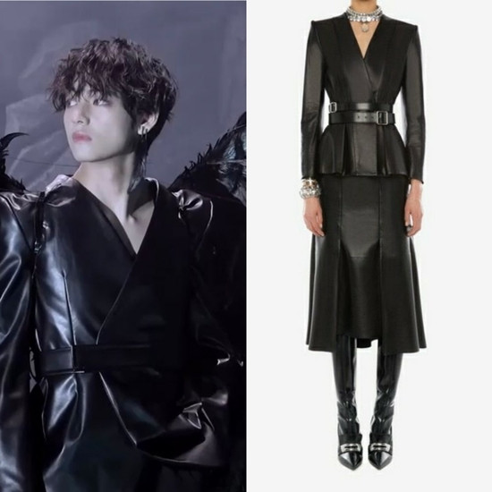 Không chỉ trang điểm mà trang phục của mà V mặc trong concept này cũng thuộc bộ sưu tập dành cho phái nữ của nhãn hiệu Alexander McQueen. Từ chất liệu đến kiểu dáng tay bồng đều khiến V nhìn giảm hẳn vẻ nam tính.