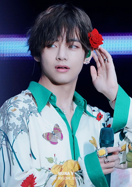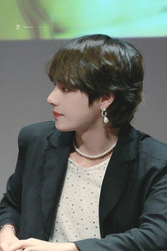 Khán giả cũng đã quen với việc V thường xuyên dùng khuyên tai hay phụ kiện to bản với những hoa văn đậm nét nữ tính. Hoa tai ngọc trai, vòng cổ hình hoa hoặc nhẫn đính đá lấp lánh đều là phụ kiện yêu thích của V, và quả thực không phải chàng trai nào cũng chinh phục những món đồ phụ nữ rất khéo như V.