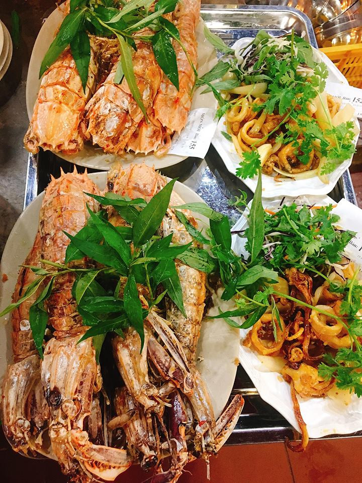Theo gợi ý thu thập được trên mạng, tớ đi bộ tới khu Chợ đêm Dinh Cậu – “thiên đường ẩm thực” tại thị trấn Đông Dương mở cửa từ khoảng 5 giờ chiều tới nửa đêm. Bước vào chợ đêm Dinh Cậu, tớ đã ngỡ mình vừa quay lại những con phố đầy ắp hải sản.