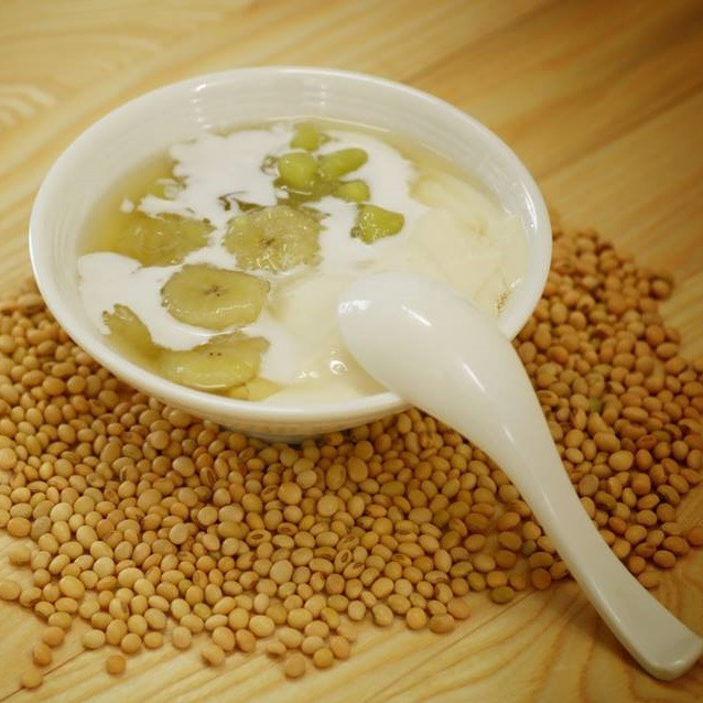 Tào phớ mềm mịn, ngọt thanh kết hợp với món nào cũng hợp. Lần này với topping là khoai dẻo tạo nên một món ăn khá lạ miệng. Thêm cả chuỗi nữa lại càng thêm ngọt ngào. Tất cả chìm trong lớp cốt dừa trằng ngần và béo ngậy. Nếu khoai dẻo giống như chất bột thì tào phớ với chuối đóng vai trò chất xơ, giúp món ăn cân bằng vị và đỡ nặng nề hơn.