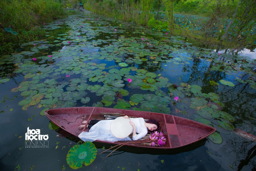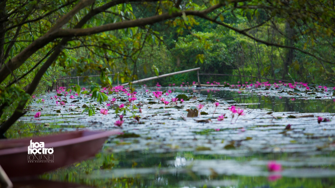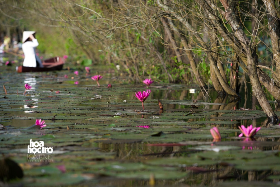 Chiếc thuyền lờ lững trôi theo hàng cây trụi lá soi bóng làn nước điểm xuyết thêm chút sắc hồng tím phơn phớt, bạn chợt nhận ra nơi đây đẹp đến lạ.