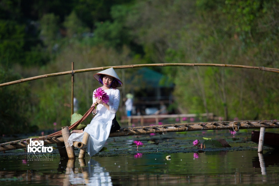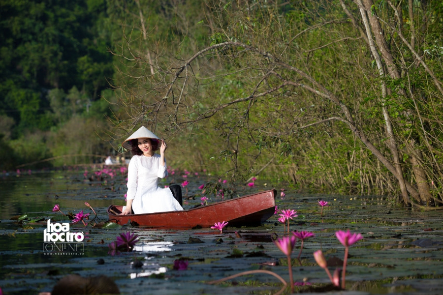 Nhiều du khách chọn thuê đò để có những bộ hình thướt tha giữa dòng nước êm, đồng thời thư thả lượn lờ ngắm 'tiên cảnh' một cách thật yên bình.