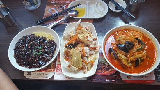 Mỳ đen có thể dễ dàng tìm thấy ở bất kỳ đâu với giá không quá đắt. Thế nhưng gần đây mới có một quán tên Hong Kong Banjeom Plus 0410 được mở ra với chủ quán cũng chính là chủ của Cafe Paik's. Cửa hàng này nằm ngoài trời và được mở ở rất nhiều nơi nên khá tiện lợi cho bạn. Mỳ đen cũng được đánh giá là ổn và chuẩn vị nguyên bản. Quan trọng nhất là giá chỉ 3470 won thôi nhé.